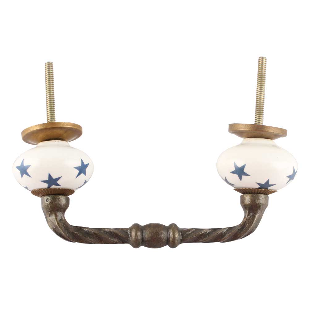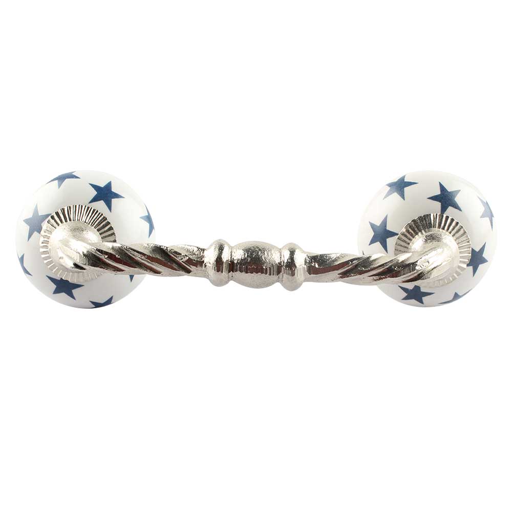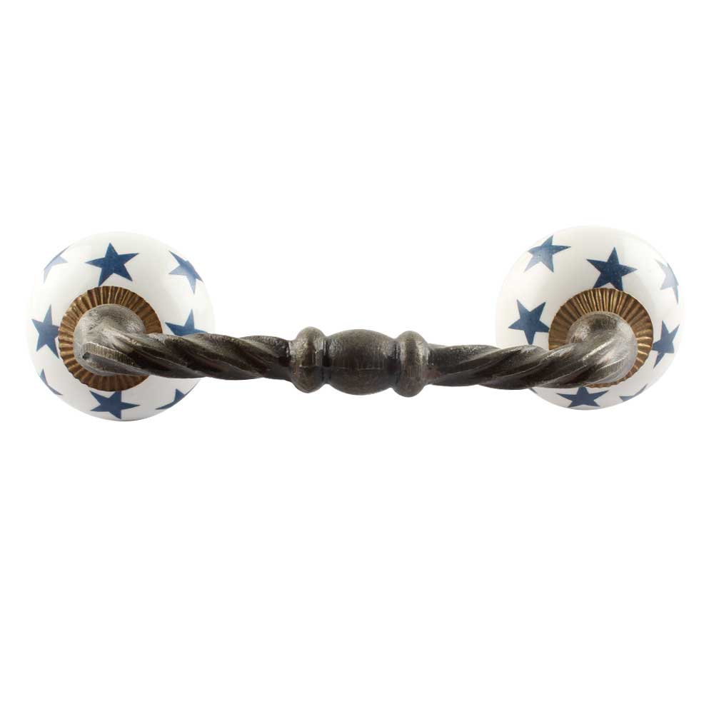 Slate Blue Star Ceramic Bridge Handle. Ideal for Drawer, Dresser, Cabinet, Wardrobe, Cupboard and Almirah.