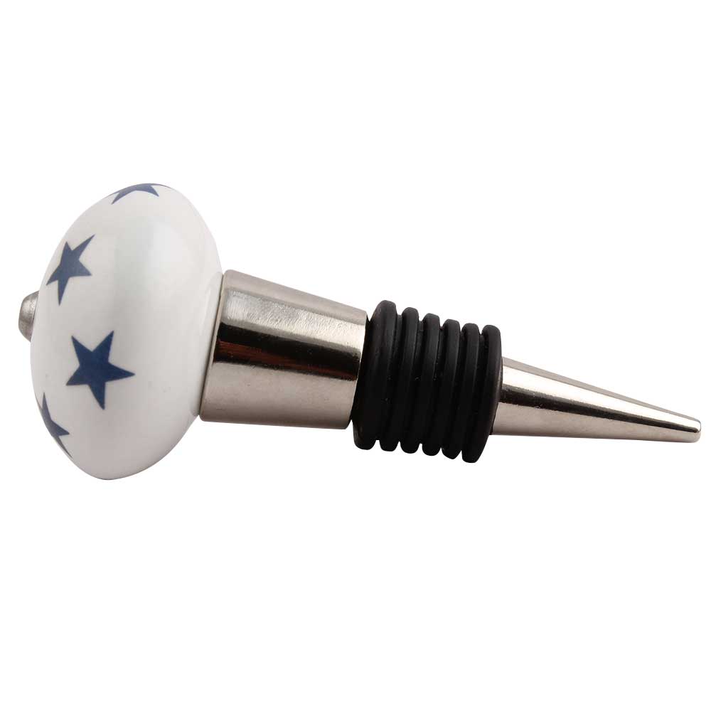 Slate Blue Star Ceramic Wine Stopper.zinc alloy wine bottle stopper with attractive Jute Bag Packaging.