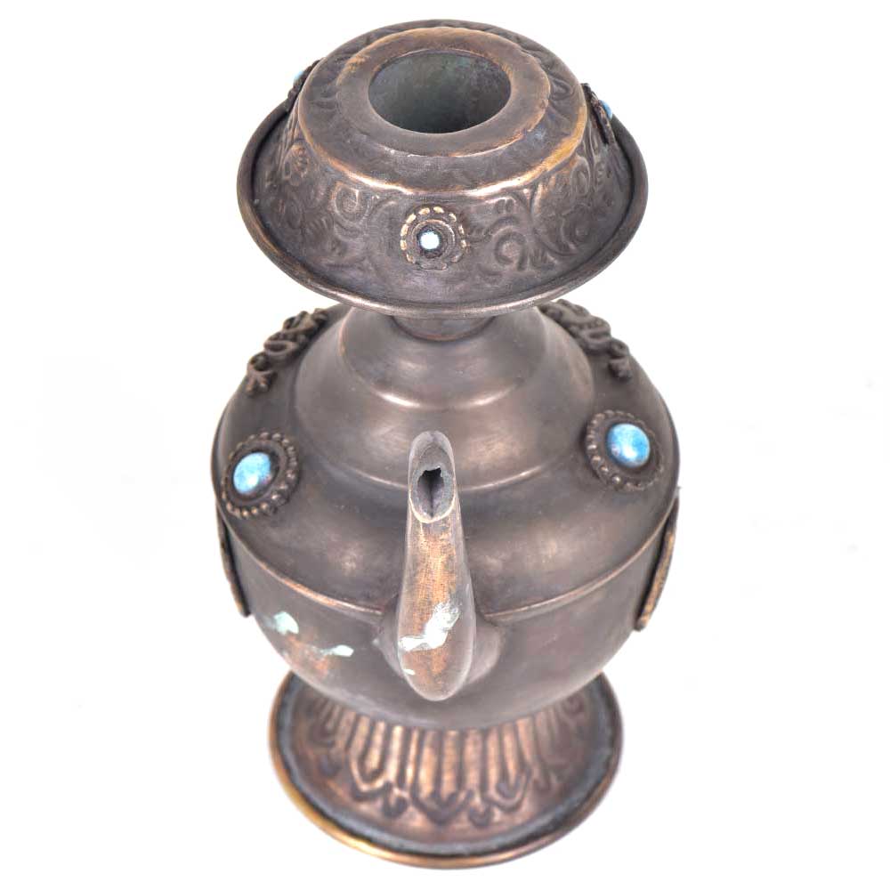 A vintage looking brass coffee or tea kettle with embossed design using stones that reminds you of old times .It is also a great collectors item that can be gifted to friends are art lovers. Perfectly suitable for decorating houses, hotels, cafes, restaurants and so on.