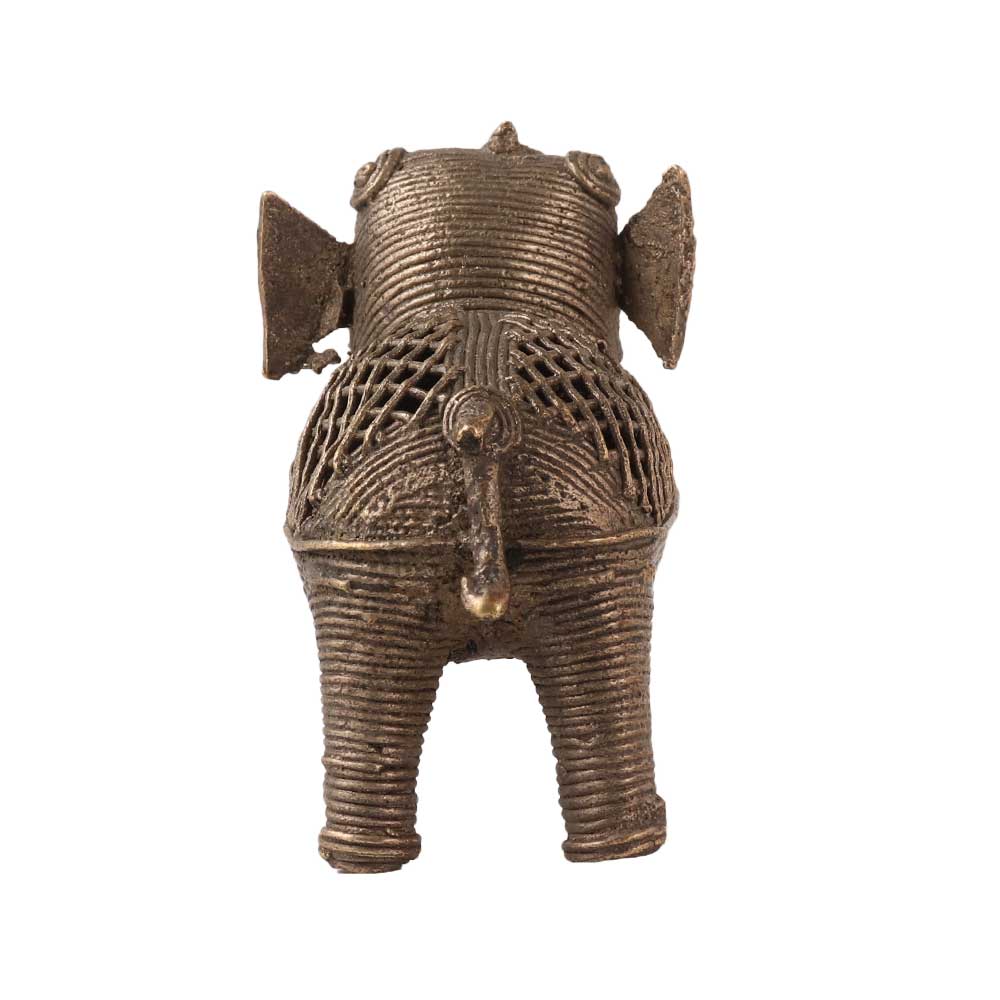 A handmade elephant statue in tribal folk art with jali work for a perfect finish. Elephants are revered in many states of India as they symbolise positivity, prosperity and good fortune and represent their intelligence and strength. It is considered auspicious to place an elephant statue in your home or office. Add glamour to your home, office and hotel interiors by placing a vintage style elephant statue on a table, reception or shelf. Its antique finish makes it an ideal gift for special and festive occasions for your family, friends or relatives.
