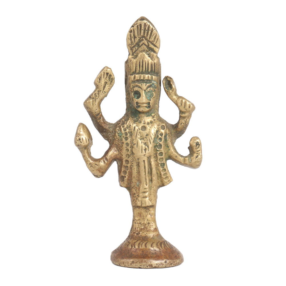 A small brass statue of Lord Vishnu for worship. This handcrafted statue is made by professional artisans from India using traditional methods. Lord Vishnu is worshipped in most temples in India and is one of the most important deities in Hinduism. He is also known as Narayan and Hari and is worshipped for success, good luck, happiness and prosperity. This statue is made of high quality brass with intricate details. Place this brass statue in your home or office prayer room or you can place this statue in the temple. Add an ethnic flair to your home or office interior with this brass statue of Lord Vishnu. An ideal gift for any special, festive and auspicious occasion for your loved ones.