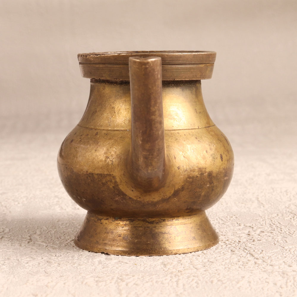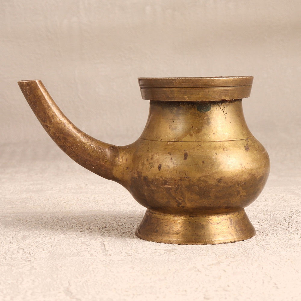 Enhance your spiritual rituals with the Brass Sagar Pot that is a sacred vessel intricately crafted in the revered South Indian Art tradition. Handmade by skilled Indian artisans, this pot boasts an antique brown finish, adding a touch of timeless elegance. Its significance lies in its purpose as a holy water pot, enhancing your prayer experience with a spout for a seamless pour. Made from high-quality brass, this sacred vessel is not only a symbol of divine connection but also a stunning piece of art suitable for various settings. Whether adorning your home, office, restaurant, hotel, or cafe, its intricate design and antique allure make it a captivating decorative element. This versatile piece seamlessly blends spirituality with aesthetics, making it an ideal addition to any vintage collection. Express your reverence by gifting this exquisite pot to your family, friends or relatives on special, festive, or auspicious occasions. Let the Brass Sagar Pot be a conduit for divine blessings and a cherished centerpiece in your sacred or decorative space.