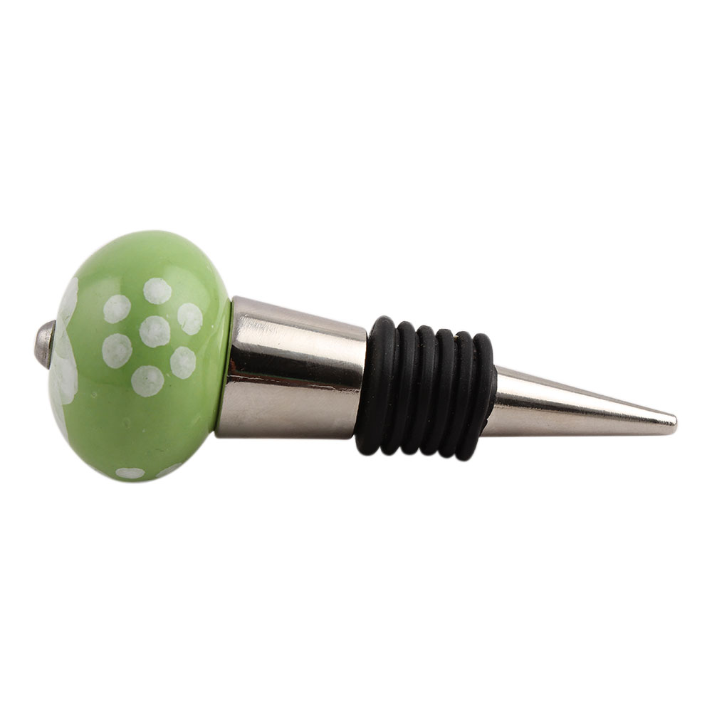 Soft Green Ceramic Wine Stopper.zinc alloy wine bottle stopper with attractive Jute Bag Packaging.