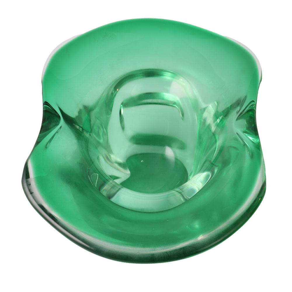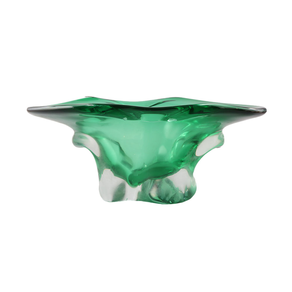 Very lovely and sizable Carved Glass plate Can be used in all parts of the house as a fruit bowl, centerpiece, or decoration. oval form, sturdy and superior glass Uncommon bright and delicate soft green colour incredibly elegant and gorgeous Stunning work of glass art. It features organic shapes and a transition of green hues to clear glass. When the sun goes down, it becomes a very attractive artwork. suitable for use as a bowl, ashtray, or vide-poche. On a small table, group it with other Murano glass bowls to create a vibrant set. Ideal as a present suggestion.