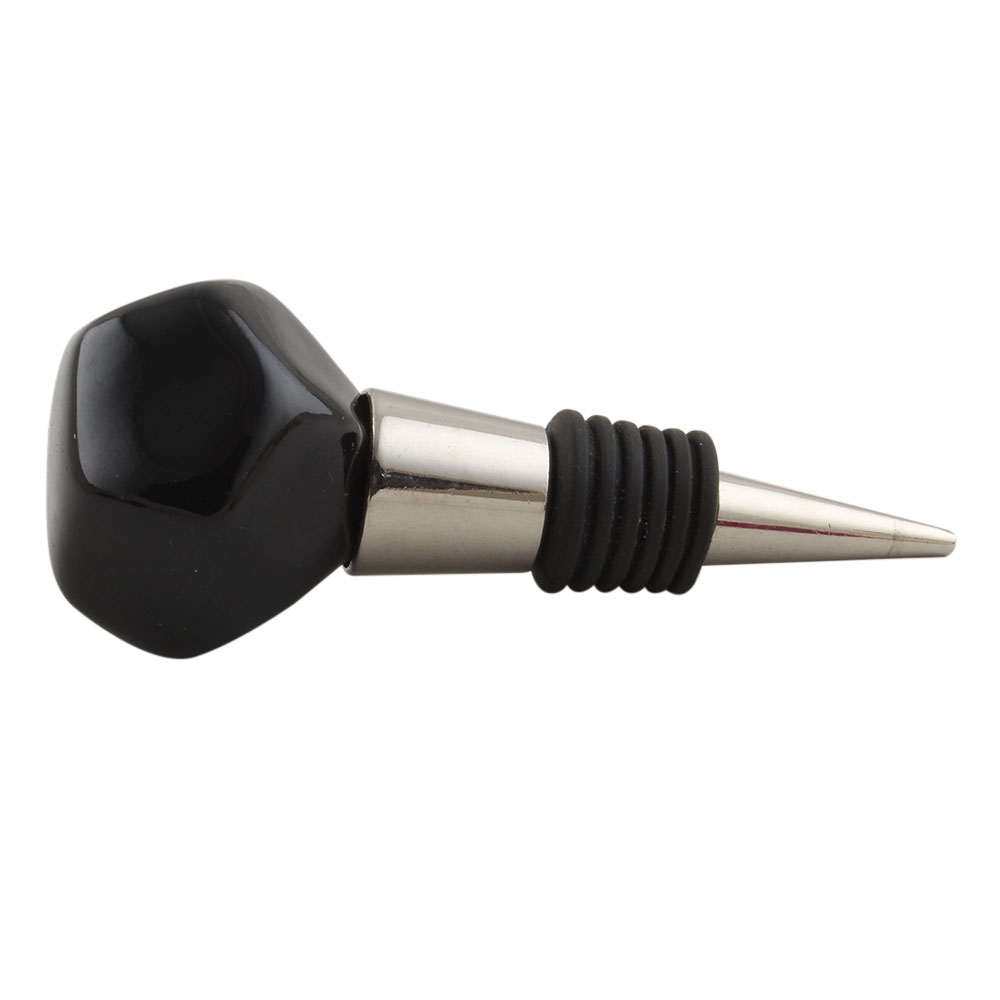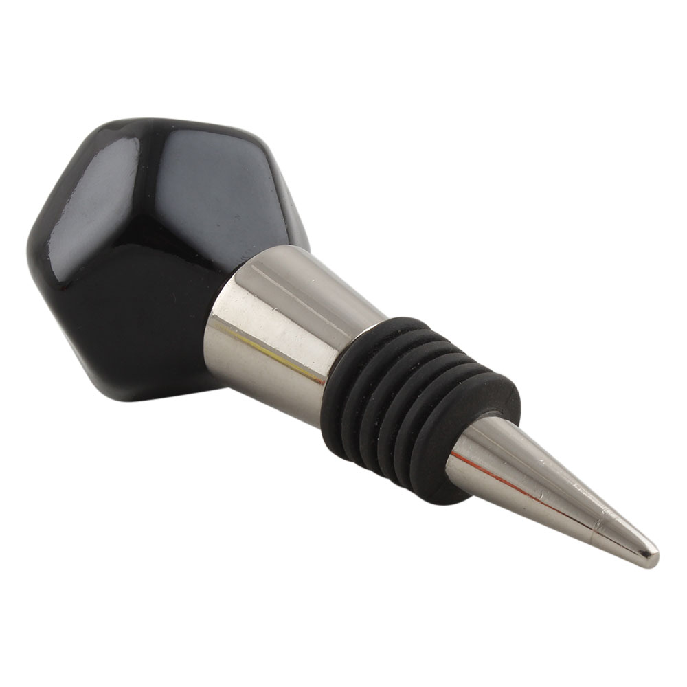 Solid Black Octagon Ceramic Wine Stopper. Zinc Alloy Wine Bottle Stopper with Attractive Jute Bag Packaging.