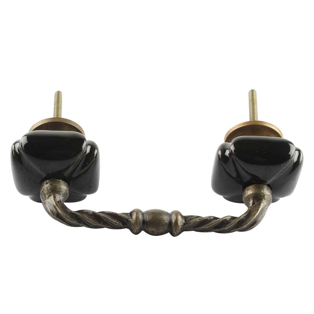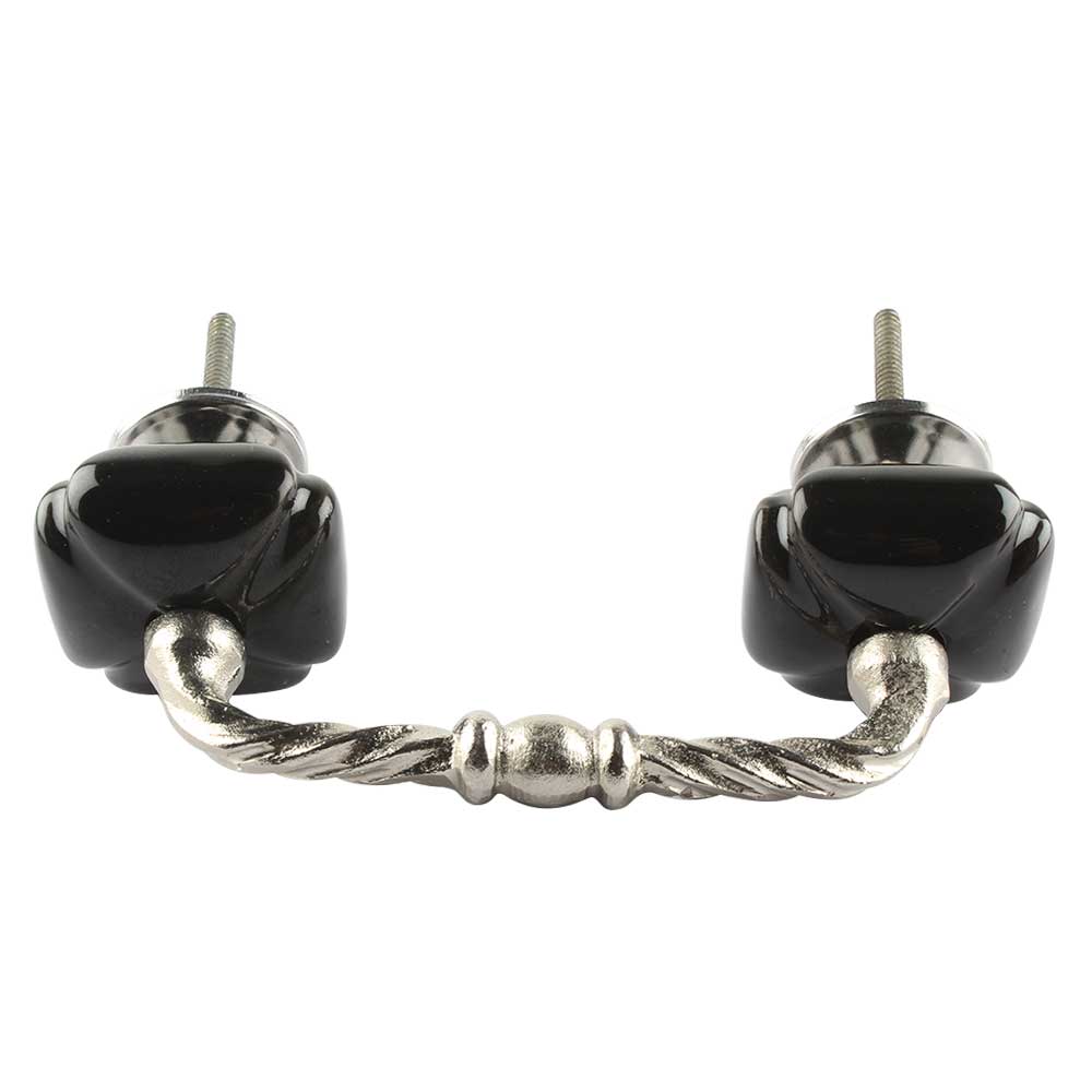 Solid Black Square Ceramic Cut Bridge Handle.Ideal for Drawer, Dresser, Cabinet, Wardrobe, Cupboard and Almirah etc.