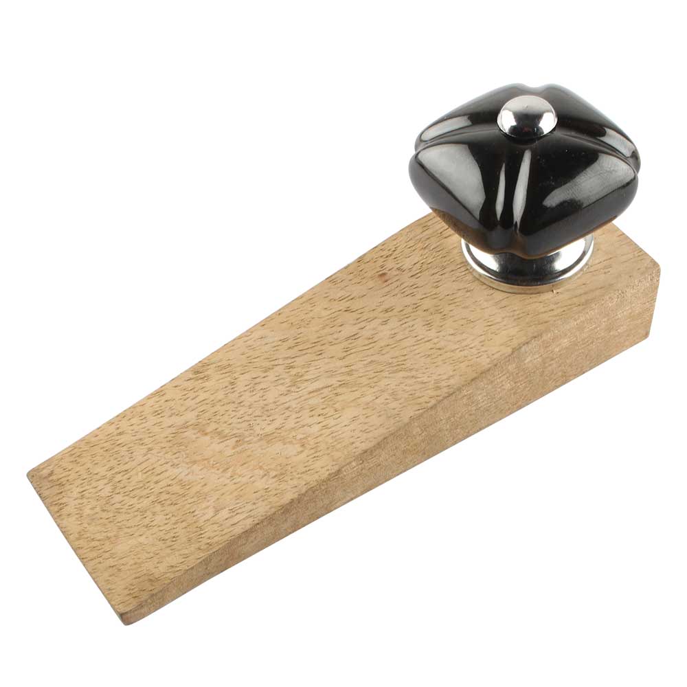 Handmade Ceramic and Wooden Door Stopper.Wooden Door Stopper with a Ceramic Knob to Carry it Easily. This Wooden Door Stopper has Glue Dots under it to Ensure that it does not Slip. It is Handmade by the Craftsmen of India and this Innovative Door Stopper won't Disappoint You.