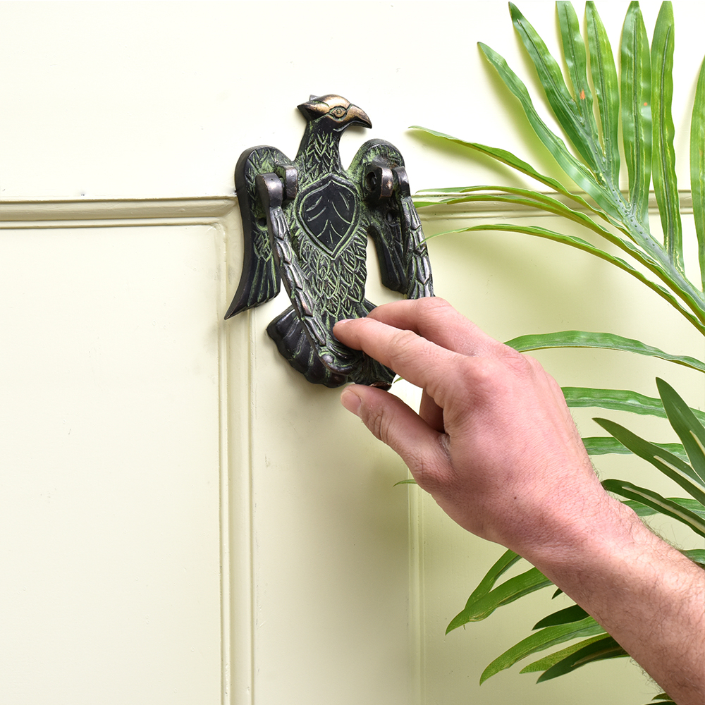 A lovely handmade brass Eagle door knocker serves not only as a vintage decorative element for the main door but is also a simple and a very traditional way to welcome the guest to announce their arrival while avoiding the use of the modern day electric bell. Perfect for each and every decor of the entire house. They are worth seeing and worth eye-catching.