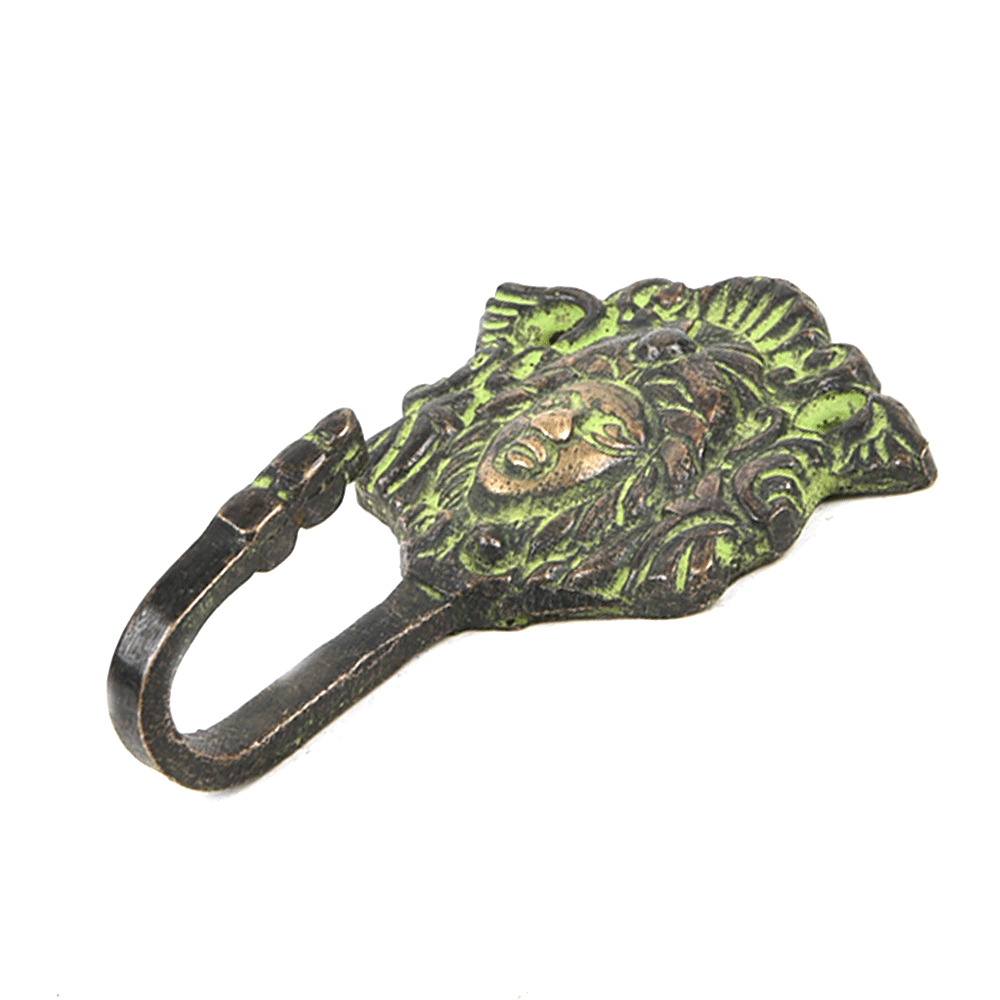 Solid Brass Lions Head Coat Hook with Patina. When Put on Wall or Cabinet It is An Art in Itself. Its A Mix of French and English Design. Suitable for Your Kitchen, Cupboard, Rooms, Cabinets, Almirahs, Bathrooms, Doors, Etc.