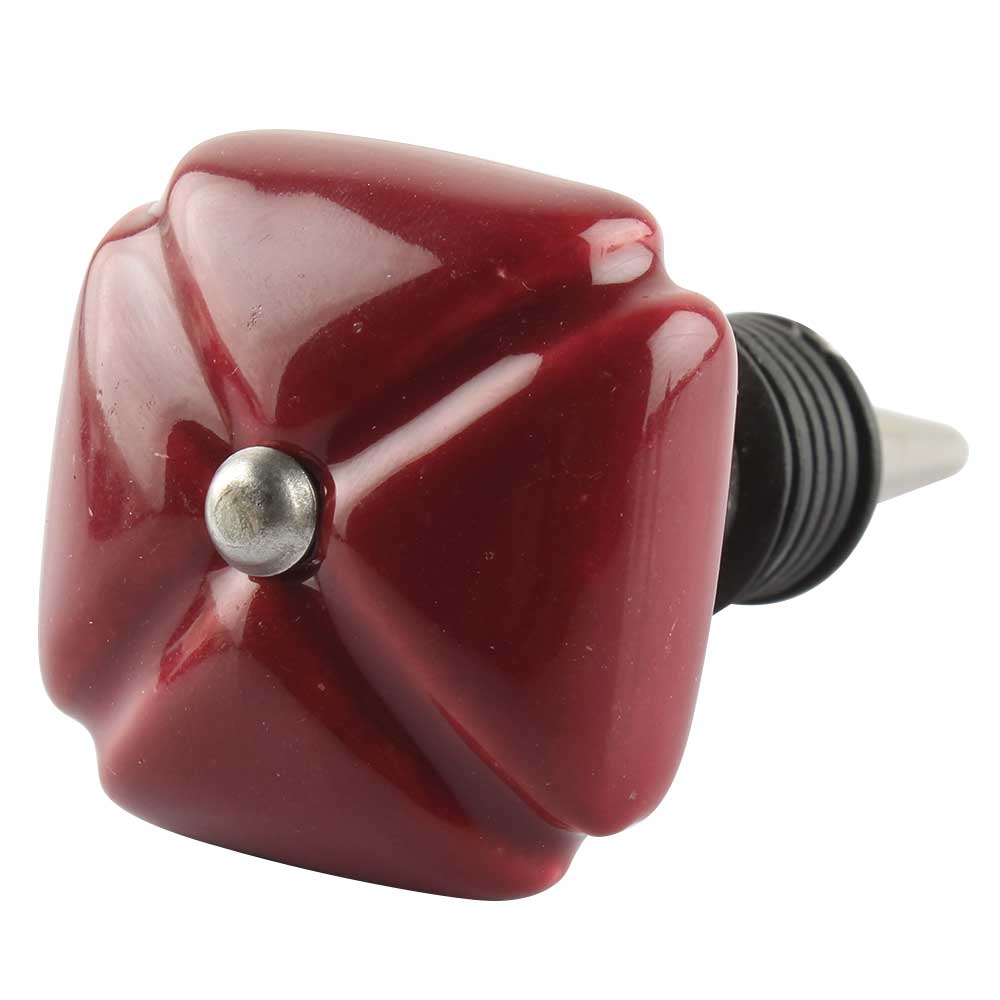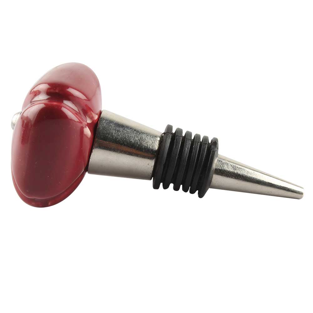 Solid Cherry Square Ceramic Wine Stopper. Zinc Alloy Wine Bottle Stopper with Attractive Jute Bag Packaging.