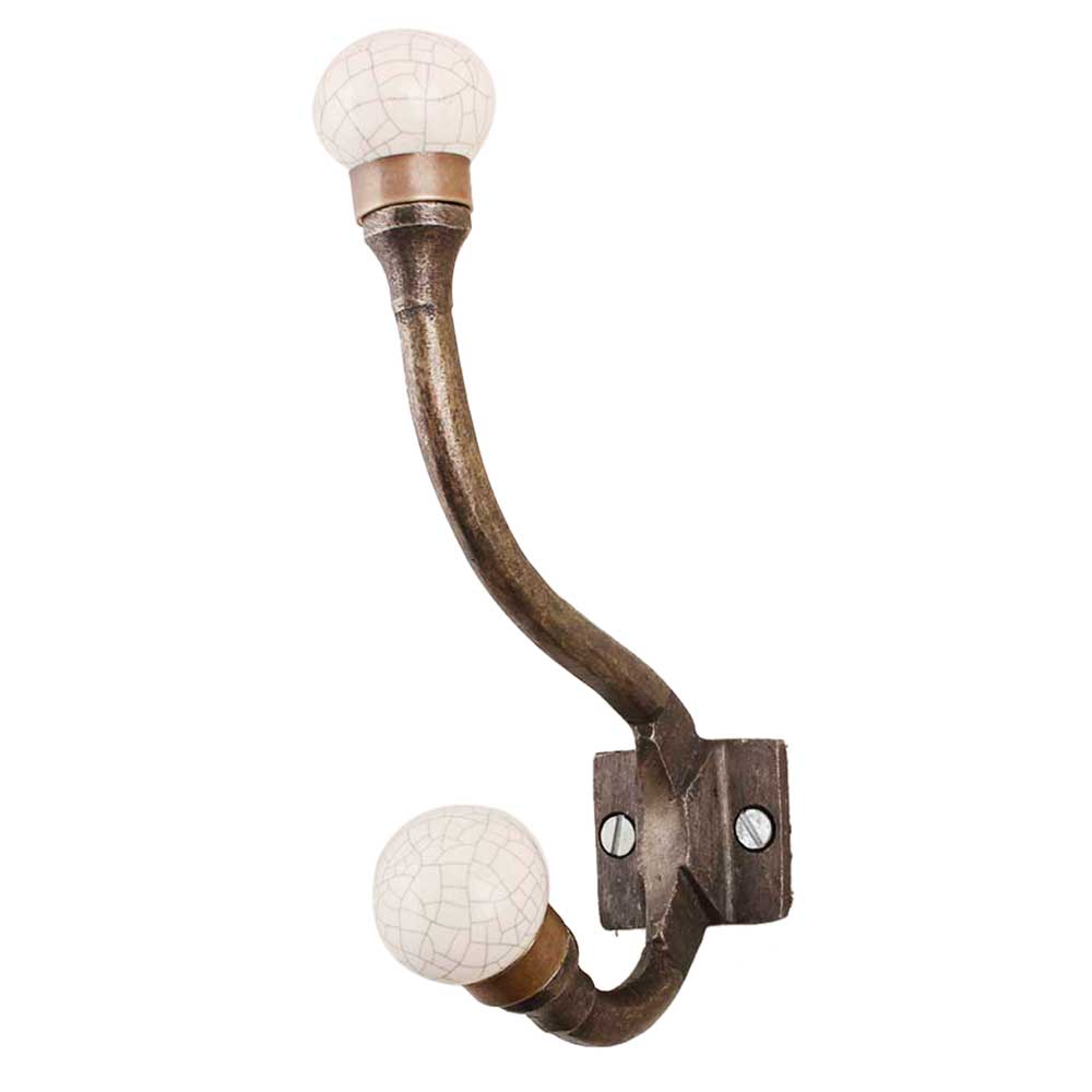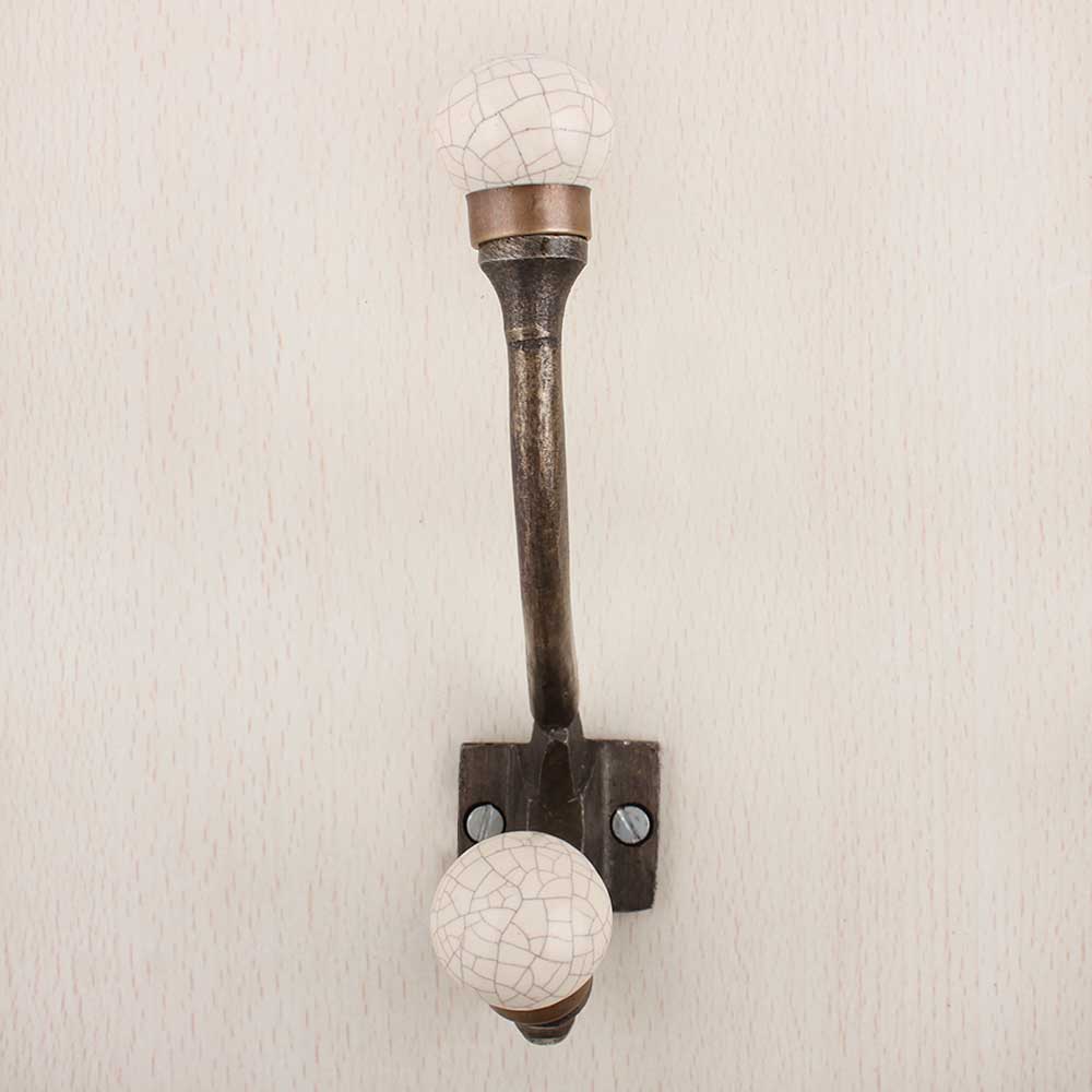 Solid Cream Crackle Iron Hook-Ehg-82. When Put on Wall or Cabinet It Gives A Sturdy Look. This Hook is Strong Enough to Hold Your Cloths, Keys, Tea Cups, Coffee Mugs, Hand Towels Etc.
