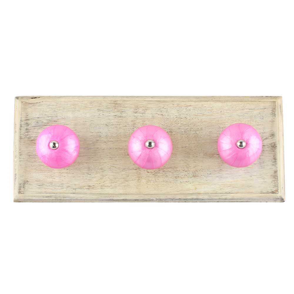 Solid Dark Neon Pink Ceramic Wooden Hook. A Perfect Complement to the Soft Tone of the Wood are these White Traditional Hat and Coat Hook Made of Genuine Porcelain and Brass. It can be used to Hang Jewelry, Leashes, Towels, Scarves, Light Weight Sweaters, Caps etc.