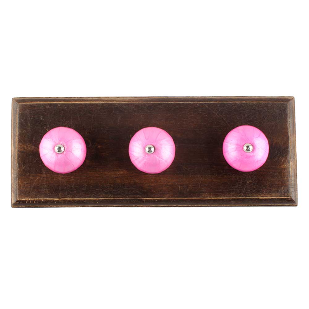 Solid Dark Neon Pink Ceramic Wooden Hook. A Perfect Complement to the Soft Tone of the Wood are these White Traditional Hat and Coat Hook Made of Genuine Porcelain and Brass. It can be used to Hang Jewelry, Leashes, Towels, Scarves, Light Weight Sweaters, Caps etc.