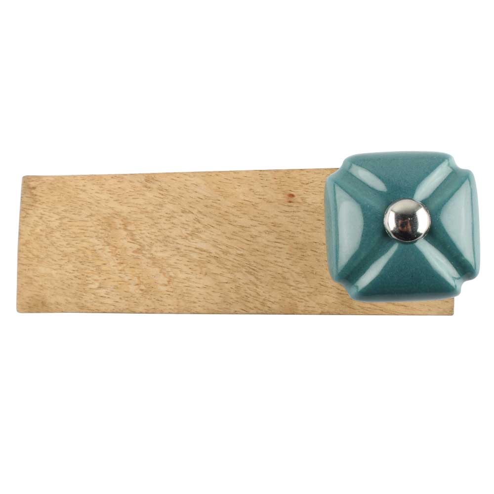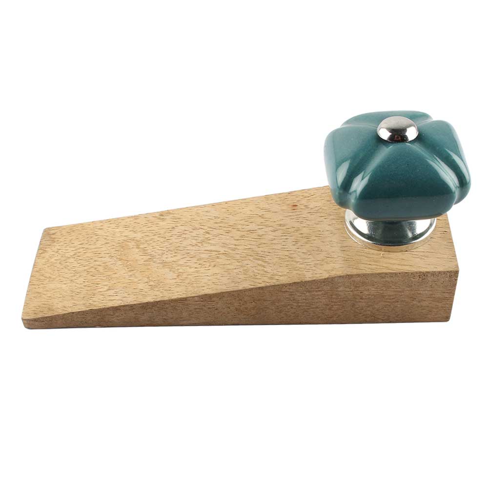 Handmade Ceramic and Wooden Door Stopper.Wooden Door Stopper with a Ceramic Knob to Carry it Easily. This Wooden Door Stopper has Glue Dots under it to Ensure that it does not Slip. It is Handmade by the Craftsmen of India and this Innovative Door Stopper won't Disappoint You.