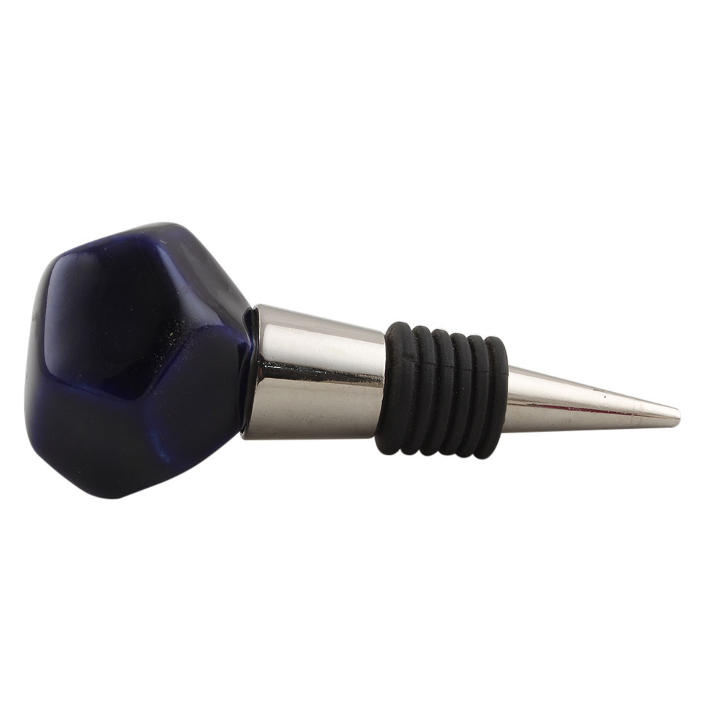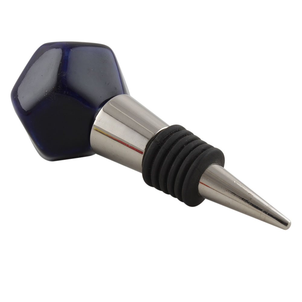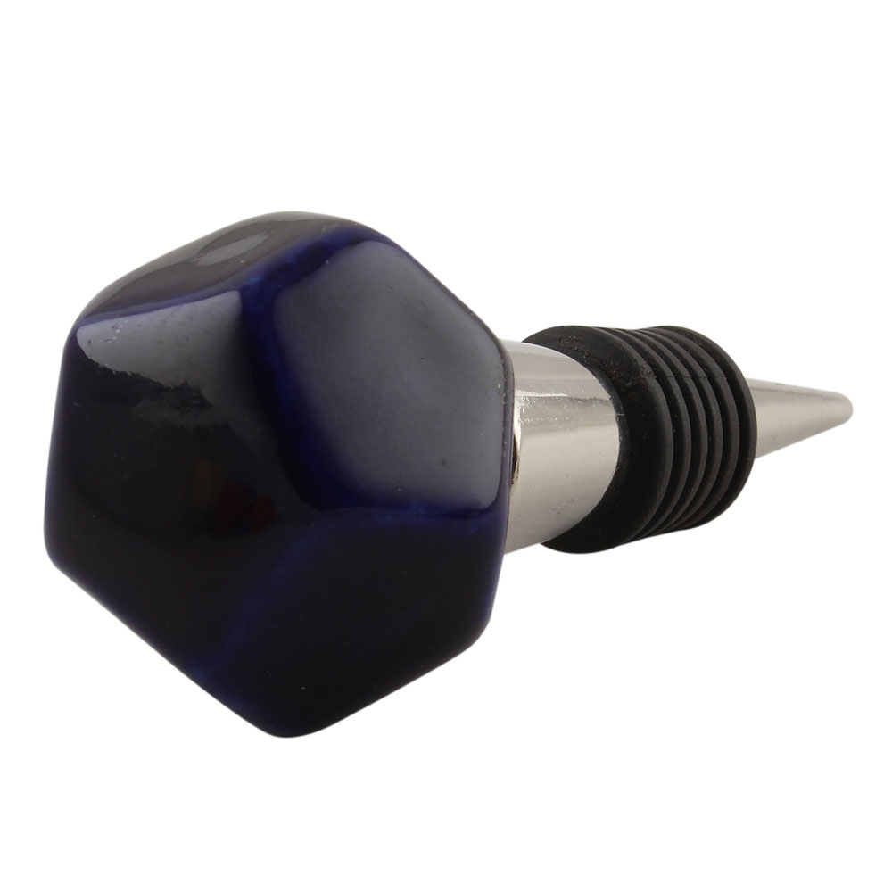 Solid Navy Blue Octagon Ceramic Wine Stopper. Zinc Alloy Wine Bottle Stopper with Attractive Jute Bag Packaging.