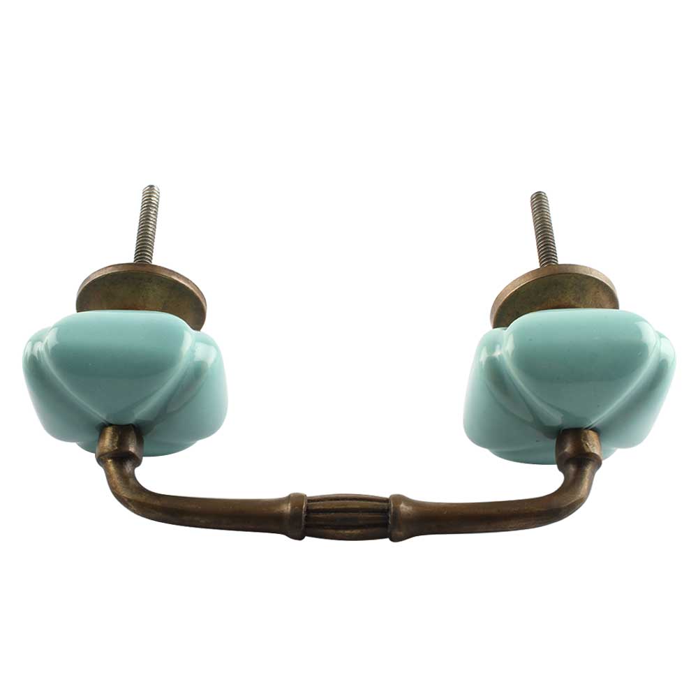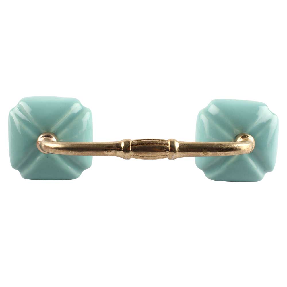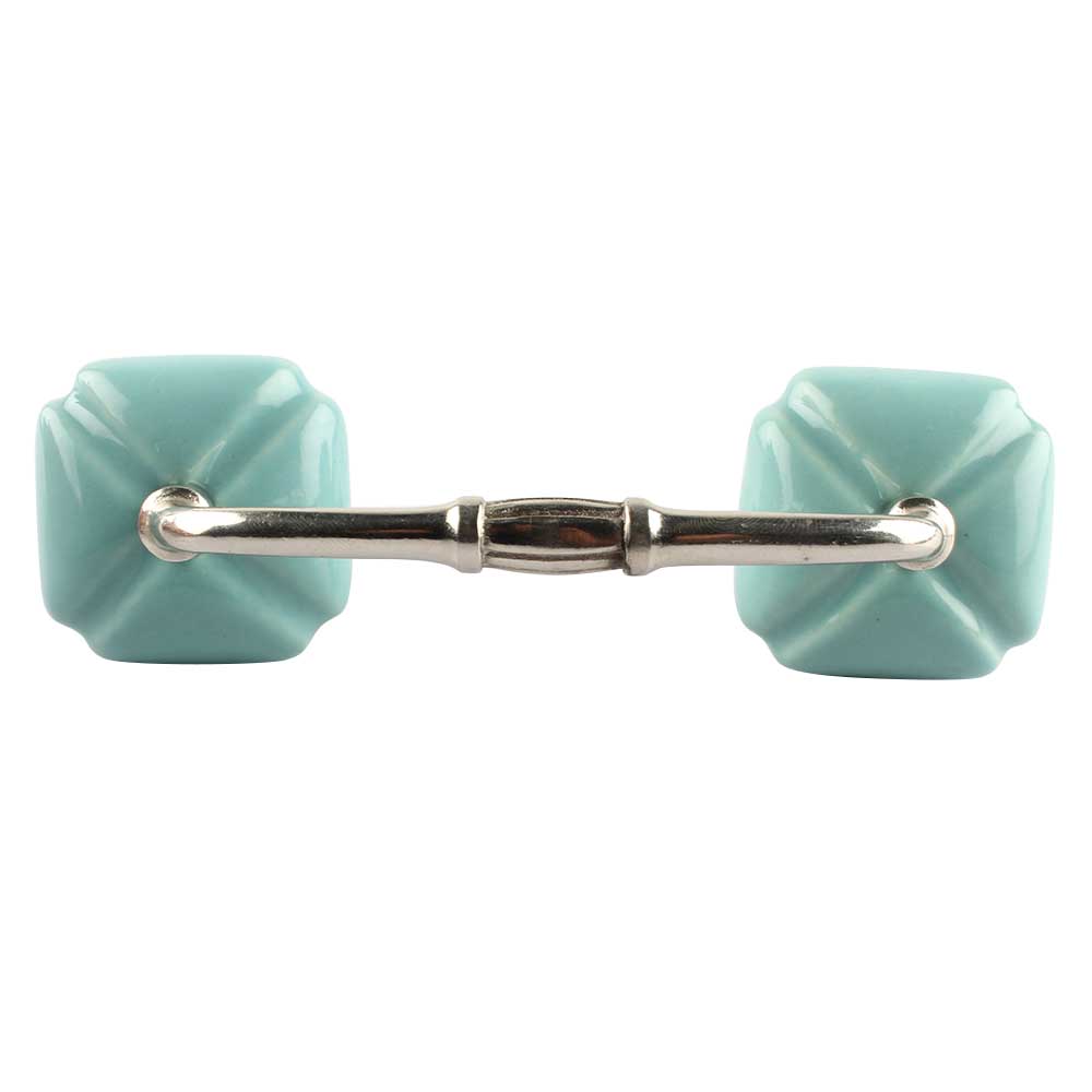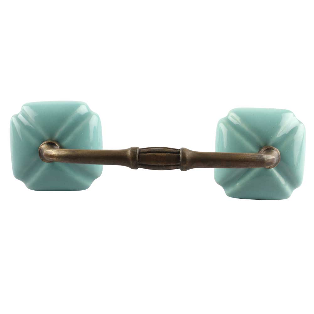 Solid Sage Green Square Ceramic Bridge Handle. Ideal for Drawer, Dresser, Cabinet, Wardrobe, Cupboard and Almirah etc.