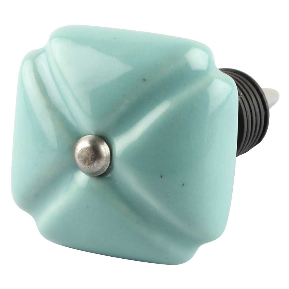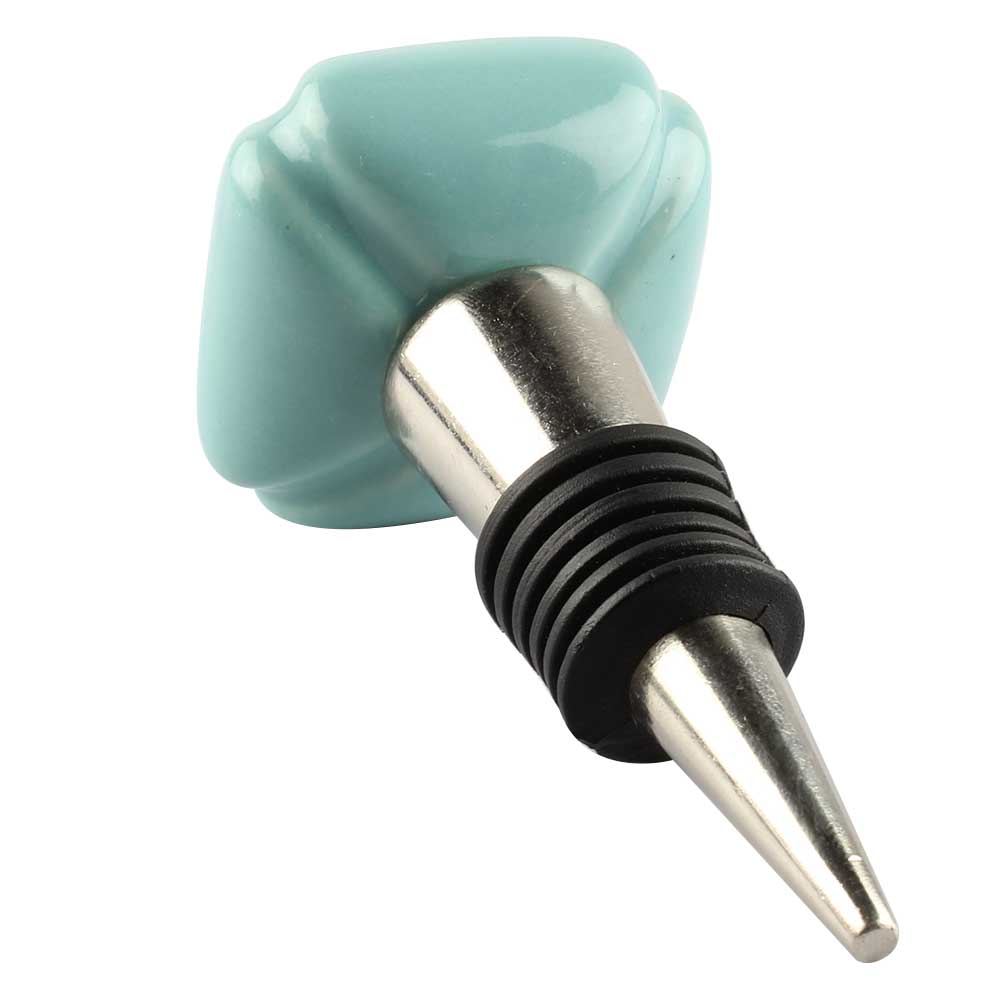 Solid Sage Green Square Ceramic Wine Stopper. Zinc Alloy Wine Bottle Stopper with Attractive Jute Bag Packaging.