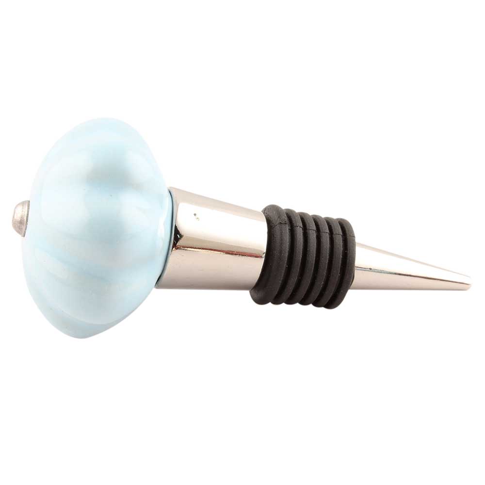 Solid Sky Blue Ceramic Melon Wine Stopper. Zinc Alloy Wine Bottle Stopper with Attractive Jute Bag Packaging.