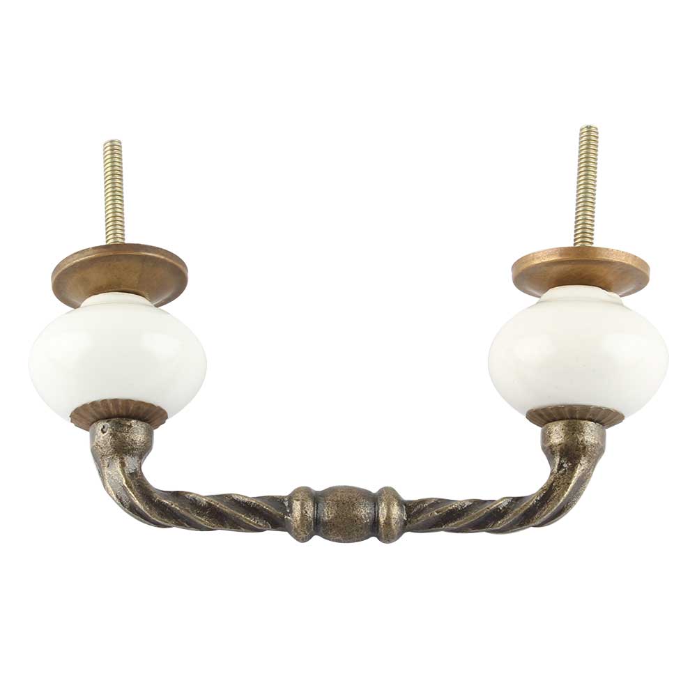 Solid White Ceramic Cut Bridge Handles. Ideal for Drawer, Dresser, Cabinet, Wardrobe, Cupboard and Almirah etc.