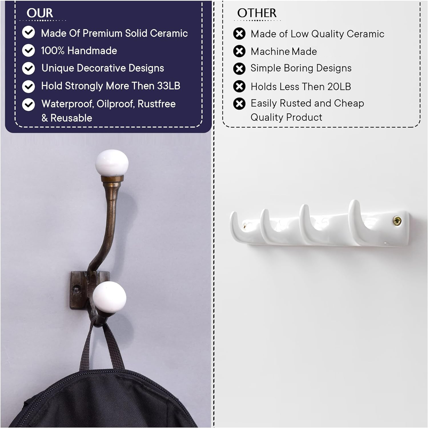 Solid White Iron Hook-Ehg-44. When Put on Wall or Cabinet It Gives A Sturdy Look. This Hook is Strong Enough to Hold Your Cloths, Keys, Tea Cups, Coffee Mugs, Hand Towels Etc.