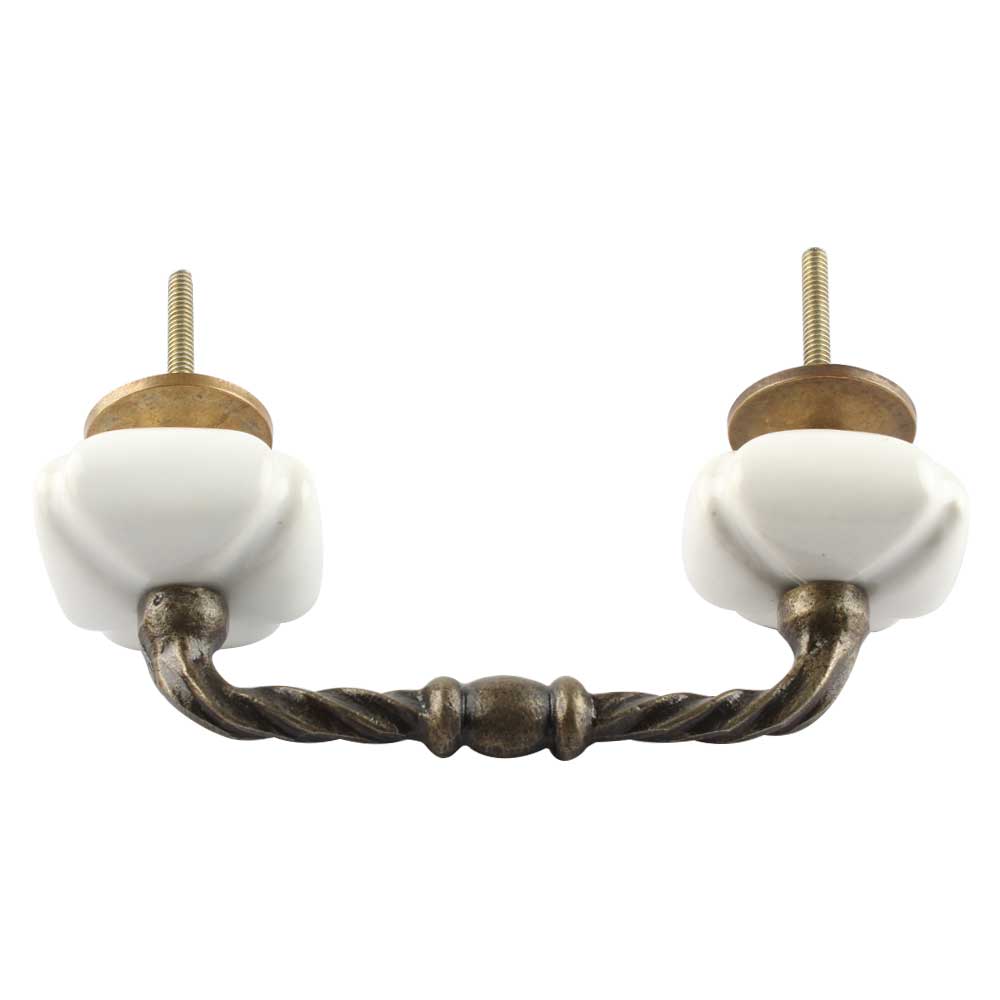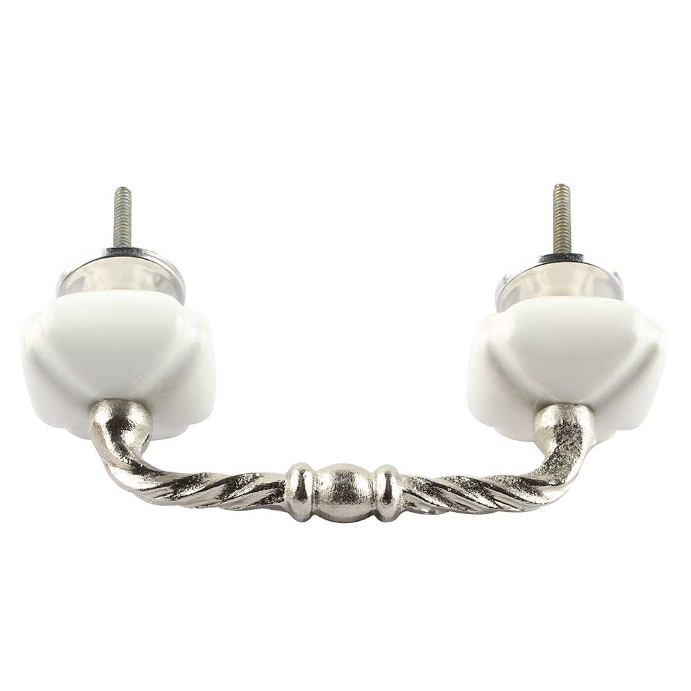 Solid White Square Cut Ceramic Bridge Handle.Ideal for Drawer, Dresser, Cabinet, Wardrobe, Cupboard and Almirah etc.