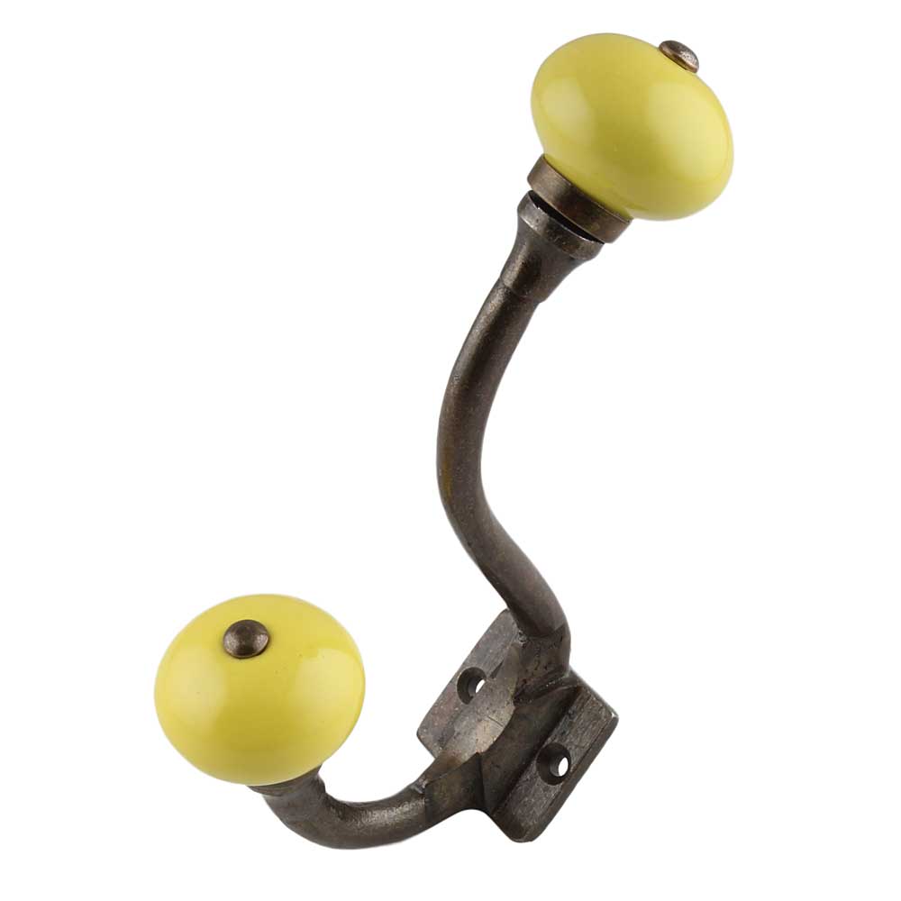 The Solid Yellow Ceramic Antique Iron Hook is a handcrafted accent that blends playful color with timeless rustic appeal. Featuring a high-gloss yellow ceramic top paired with an antique-finish iron base, this decorative wall hook is built to be both functional and eye-catching. Whether you're adding character to a farmhouse entryway or brightening up a modern kitchen, this hook delivers warmth, strength, and vintage-inspired personality.