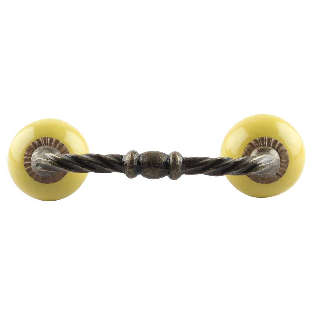 Solid Yellow Ceramic Cut Bridge Handles.Ideal for Drawer, Dresser, Cabinet, Wardrobe, Cupboard and Almirah etc.