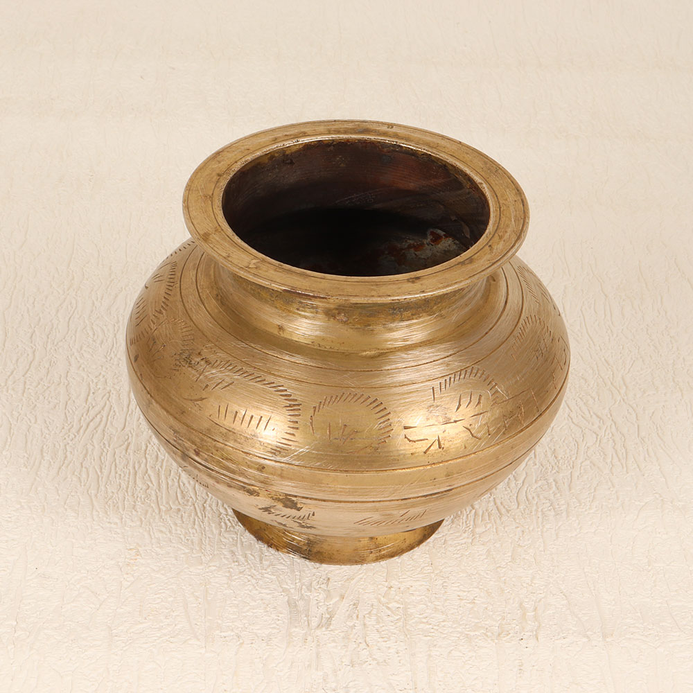 This Vintage Brass Holy Water Pot is a testament to the rich cultural heritage of South Indian Art. Crafted by talented Indian artisans, this sacred vessel is fashioned from high-quality brass and boasts an antique brown finish, evoking a sense of timeless elegance. Ideal for prayer, rituals, and havans, this holy water pot is adorned with intricate engravings, each telling a story of spiritual significance. Its handmade nature ensures a unique touch, making it a cherished addition to any space. Versatile and functional, it serves as a divine receptacle for holy water during religious ceremonies, while its aesthetic appeal allows it to seamlessly blend into home, office, restaurant, hotel, or cafe prayer rooms. Beyond its religious utility, this pot transforms into a stunning indoor flower pot, adding a touch of vintage charm to your decor. A perfect item for collectors seeking unique pieces with historical allure, it makes for an exceptional gift during special, festive, or auspicious occasions, symbolizing the best of craftsmanship and spiritual devotion. Embrace the divine essence of tradition with this Vintage Brass Holy Water Pot.