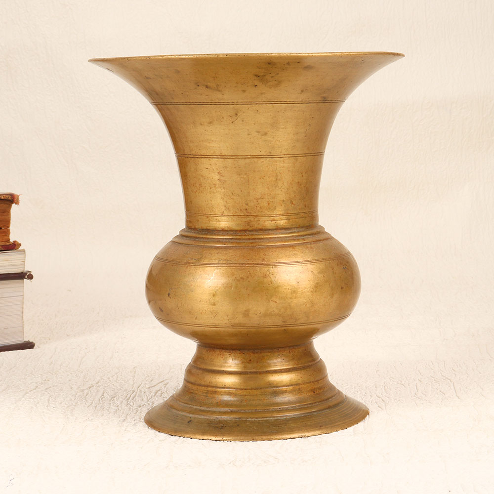 Adorn your interior with the timeless charm of our Vintage Brass Flower Pot which is a true masterpiece crafted by talented Indian artisans in the intricate style of South Indian Art. The pot boasts a rich antique brown finish, adding a touch of old-world elegance to any space. Handmade with precision and care, this exquisite piece is a testament to the artistry passed down through generations. Made from high-quality brass, the flower pot is not just a decorative item but a symbol of craftsmanship and heritage. Its versatile design makes it suitable for various settings, whether adorning your home, office, restaurant, hotel, or cafe. The warm, earthy tones and ornate detailing make it a captivating addition to vintage collections. This unique flower pot isn\'t just a statement piece but also a thoughtful gift for your family, friends or relatives on special, festive, or auspicious occasions. Its classic design transcends trends, ensuring a timeless appeal that will be cherished for years to come. Bring a touch of South Indian artistry and a sense of history into your surroundings with this Vintage Brass Flower Pot.