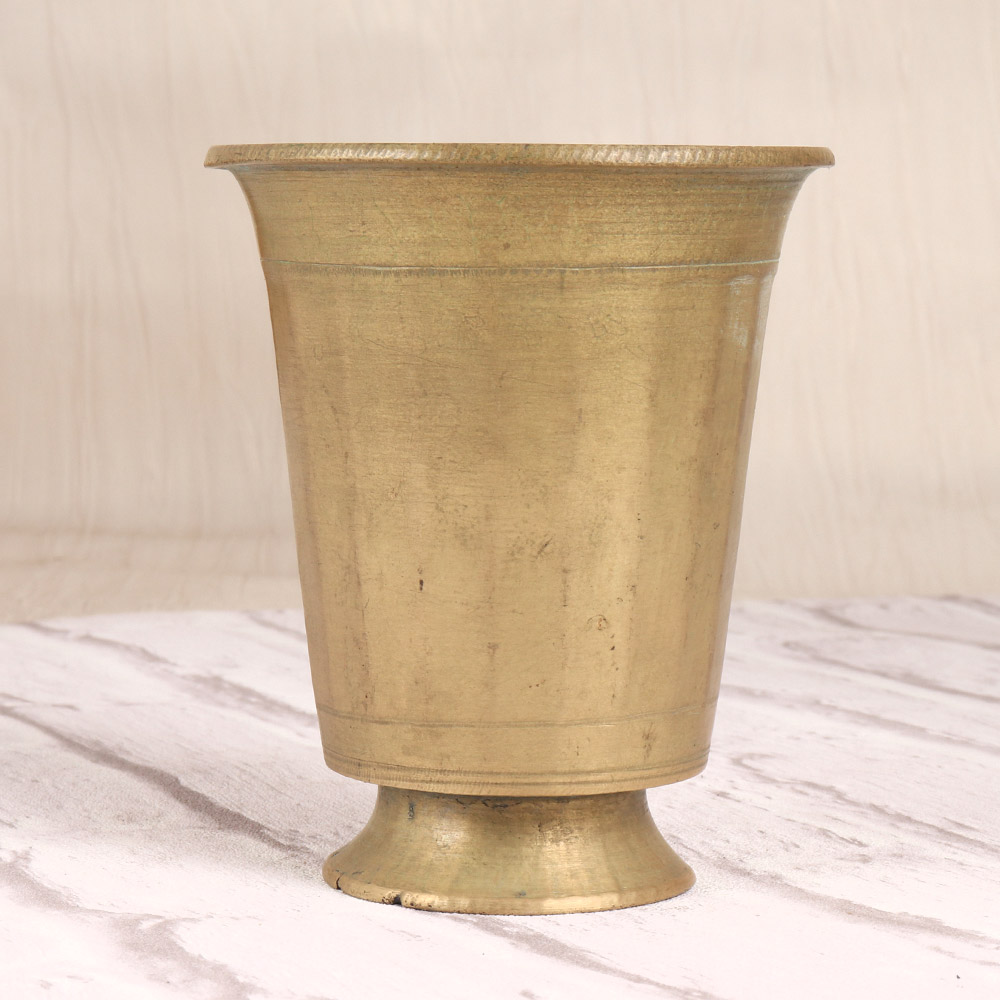 Steeped in the rich cultural traditions of South India, this exquisite vintage brass holy water cup is a testament to the region's enduring spiritual legacy. Crafted with meticulous attention to detail, this cup invites you to deepen your connection to the divine and elevate your sacred practices. Immerse yourself in the timeless wisdom of South Indian ritual with this versatile holy water cup. Use it to hold blessed water for cleansing, purification, and blessings, or incorporate it into your personal meditation and prayer practices. Its simple yet striking design makes it a beautiful addition to any home altar or sacred space. Whether you're a seasoned practitioner or new to the world of South Indian spirituality, this holy water cup will become a cherished companion on your journey of self-discovery and spiritual growth. Unlock the secrets of ancient ritual, and let this timeless vessel guide you towards a deeper understanding of the divine.