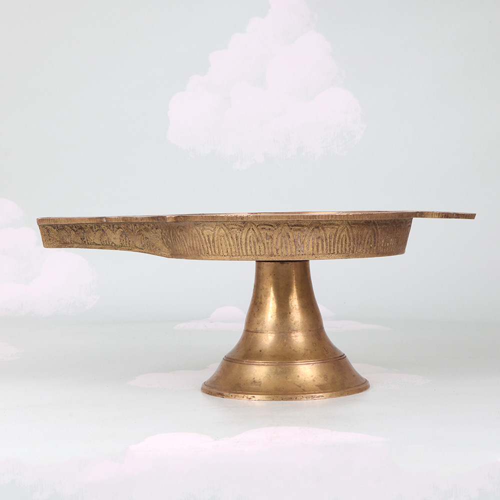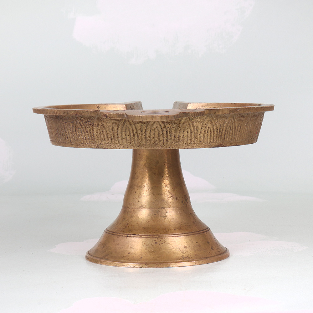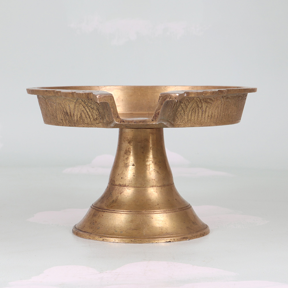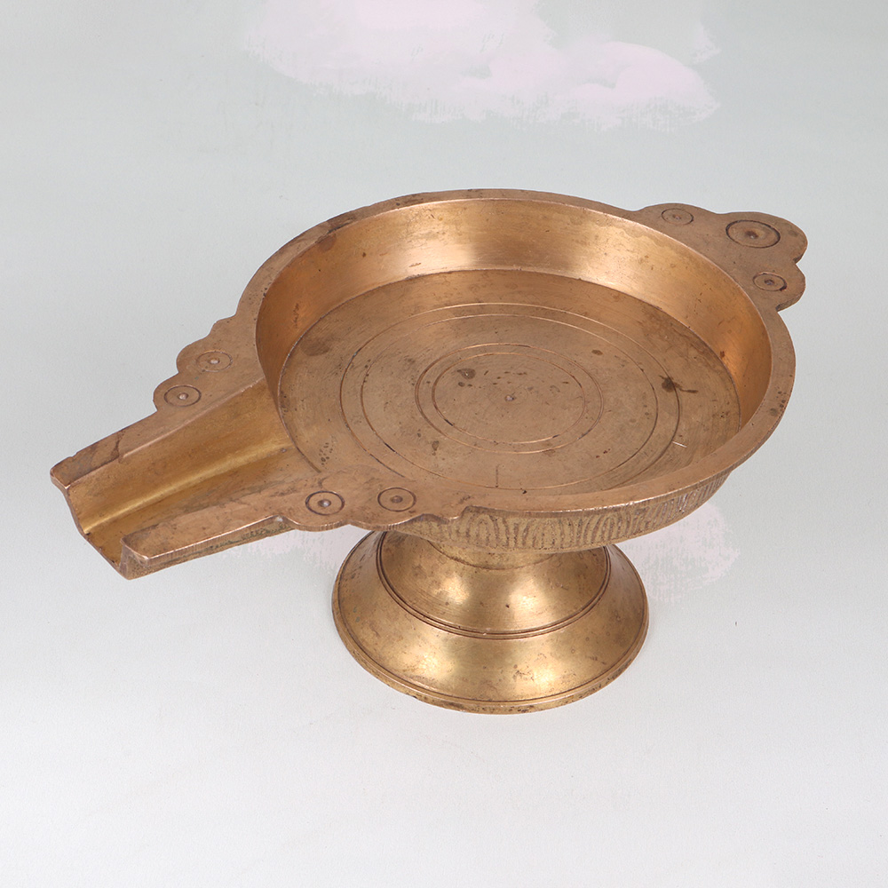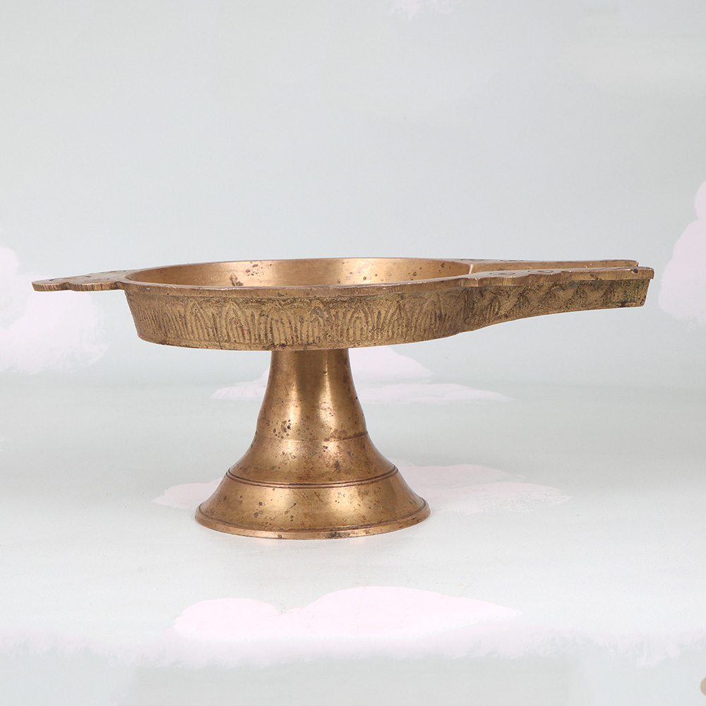Bask in the glow of history with our Vintage Brass Oil Lamp, a stunning piece of South Indian art. Crafted with meticulous attention to detail, this lamp celebrates the region's renowned metalworking tradition in every intricate flourish. Illuminate your space with the warm, flickering light of this captivating oil lamp. As the flame dances across the brass surface, it casts a golden glow that evokes the opulence of bygone eras. Let the lamp's mesmerizing radiance transport you to a world of aromatic spice markets and palatial grandeur. Whether displayed on a mantel, side table, or bookshelf, the Vintage Brass Oil Lamp adds an air of timeless sophistication to any room. Its classic silhouette and handcrafted details make it a cherished heirloom that will only grow more beautiful with time. Immerse yourself in the rich cultural heritage of South India and let this stunning lamp become the centerpiece of your home.