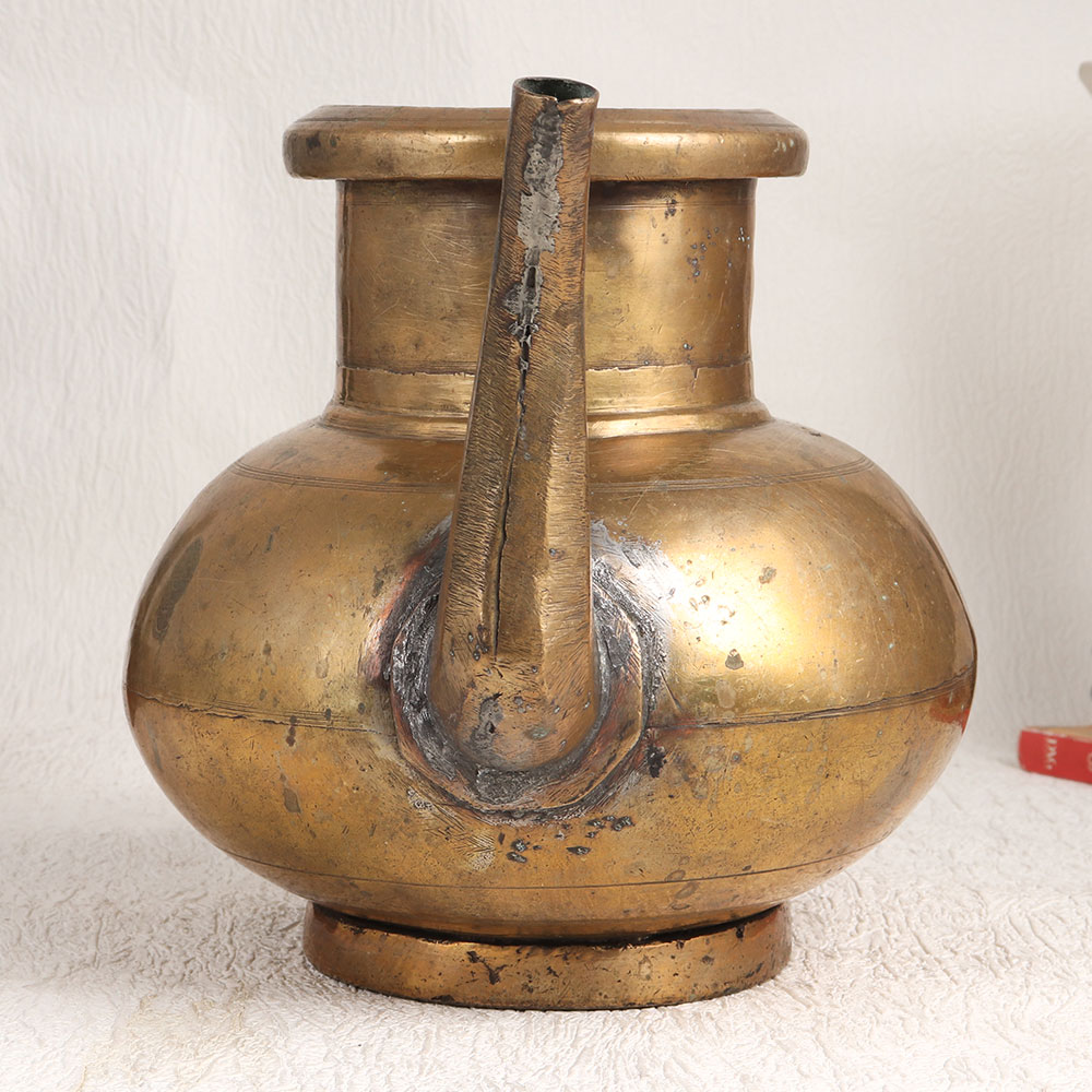 Adorn your interior with this exquisite Vintage Brass Holy Water Pot that is a true embodiment of craftsmanship and tradition. Handmade by highly skilled Indian artisans in the time-honoured South Indian Art style, this piece showcases their mastery with intricate detailing and a rich antique brown finish. Crafted from high-quality brass, this holy water pot exudes a timeless charm that seamlessly complements any setting. Its spout adds both elegance and functionality, making it a versatile addition to your home, office, restaurant, hotel, cafe, or shop. As a decoration, it can double as a unique flower pot, infusing your space with an aura of cultural heritage. Beyond its decorative value, this holy water pot pays homage to its spiritual roots. Historically used to offer water to devotees during religious ceremonies, it's an emotional reminder of ancient rituals. This piece is not only a captivating addition to your vintage collection or exhibition but also a thoughtful gift for your family, friends or relatives on special, festive, or auspicious occasions. Embrace the grace and significance of Indian artistry with this Vintage Brass Holy Water Pot.