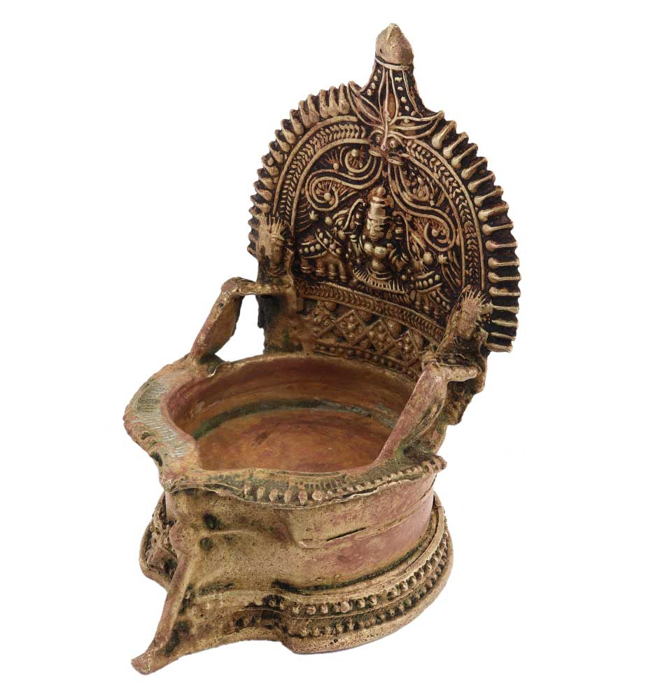 Brass Oil lamp with gajlaxmi and two jumbo elephants with fine engravings and a storage diya that can be filled with oil , ghee with a single wick. Diwali function, engagement, inauguration ceremonies, family functions, religious ceremonies etc, gift for your near and dear ones.