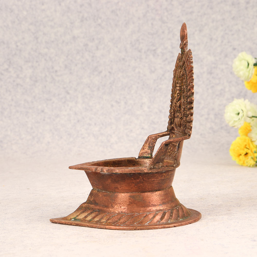 Buy a Vintage Brass Gajlakshmi Oil Lamp online that is a testament to exquisite craftsmanship and spiritual elegance. Handmade by talented Indian artisans in the time-honoured tradition of South Indian Art, this lamp embodies the divine aura of Gajlakshmi, the goddess of prosperity. Cast from high-quality brass, its antique brown finish adds a touch of vintage charm, making it a captivating centerpiece for prayer rooms at home, offices, restaurants, hotels, or cafes. This intricately crafted oil lamp not only serves as a sacred accessory for prayer but also as a unique addition to your vintage collection. Its rich history and cultural significance make it a thoughtful and meaningful gift for your family, friends or relatives on special, festive, or auspicious occasions. Each detail of the Gajlakshmi Oil Lamp reflects the dedication and skill of the artisans, creating a timeless piece that transcends generations. Illuminate your sacred spaces with the warm glow of tradition and spirituality. Let the Vintage Brass Gajlakshmi Oil Lamp be a symbol of divine blessings, a connection to heritage, and a cherished artefact that enhances the ambiance of any setting.