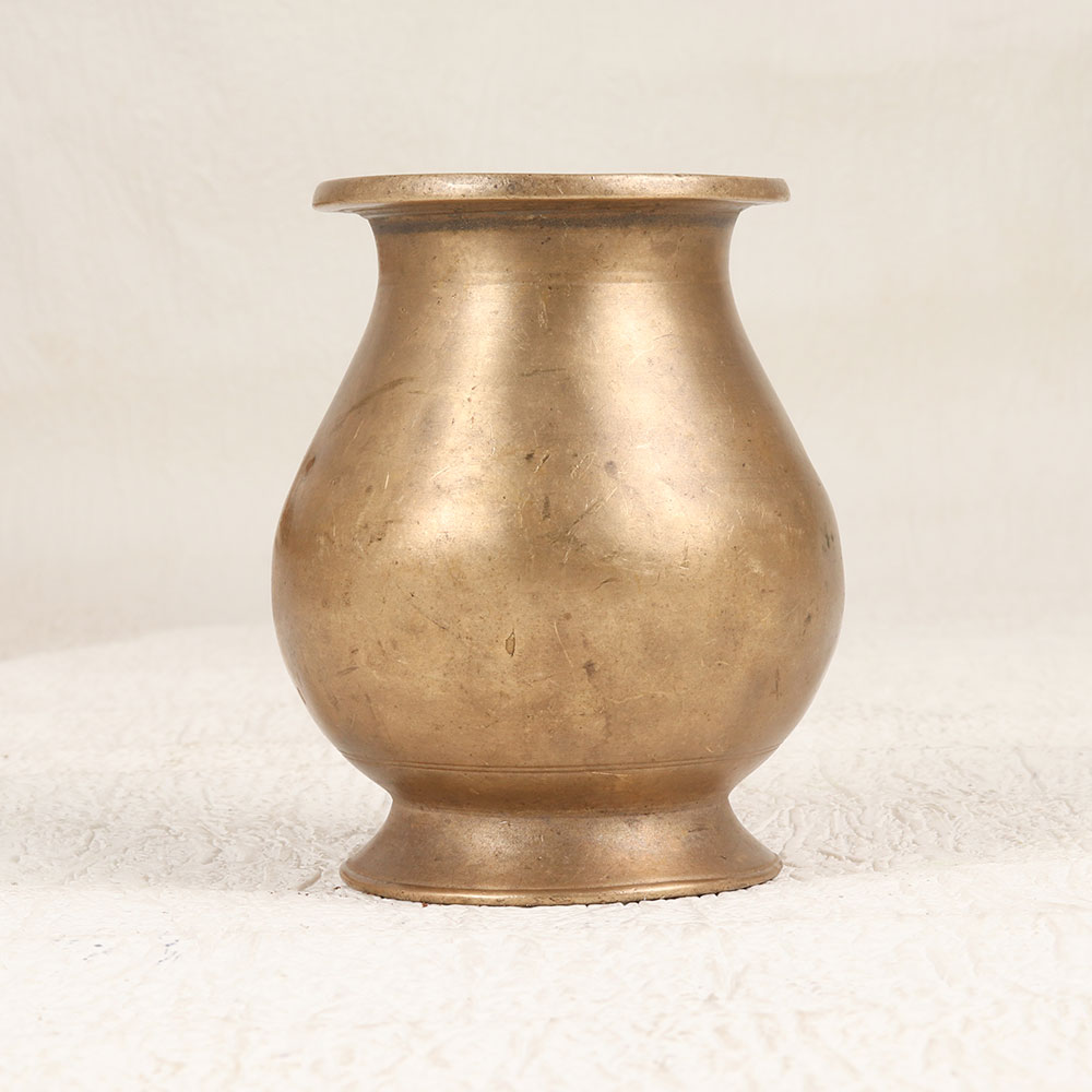 Bring a piece of sacred history into your home with this stunning vintage brass holy water pot. This beautiful vessel was handcrafted in South India decades ago, lending it a timeless, spiritual aura. This vintage holy water pot, also known as a lota in India, will add a touch of sacred charm to any space. When filled with holy water, this vessel becomes more than just a decorative piece. Place it near your prayer space or altar to have cleansing water on hand whenever you need to renew your spirit. The gentle clinking sound of the brass chains as you pick it up and set it down will become a soothing addition to your rituals. Bring home this special piece of history today. This vintage brass pot makes a thoughtful gift for spiritual loved ones or a unique accent that stands out from common modern dÃĩcor. With its rich history and artful craftsmanship, this holy water pot will lend a touch of sacred tradition to your home.