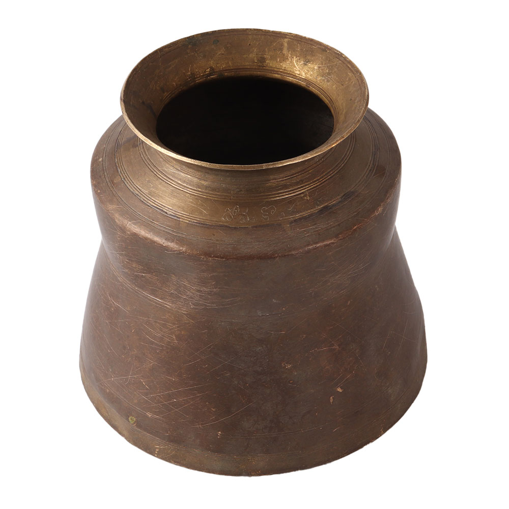 The pot is handmade in India from brass by regional craftspeople. This pot has a lovely shape and simple etching. The journey to going back to our origins, when Brass was a material that was frequently used to make everyday utensils and home décor items, is paved by this unusual south indian pot. Use the vintage vases or pots as planters for indoor plants or to display seasonal flowers in your living room. Give it as a present to your parents, your spouse, or your friends to mark a special occasion with a distinctive brass object.