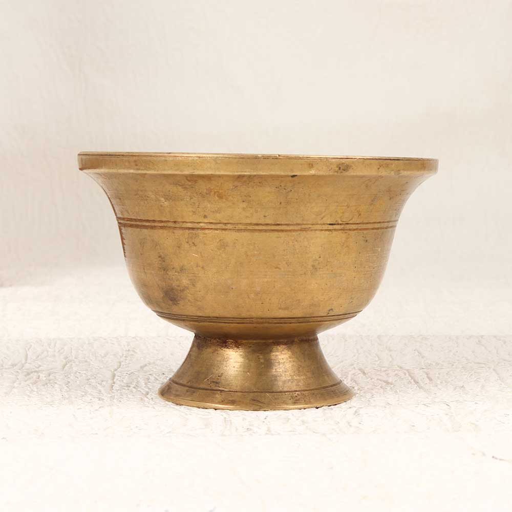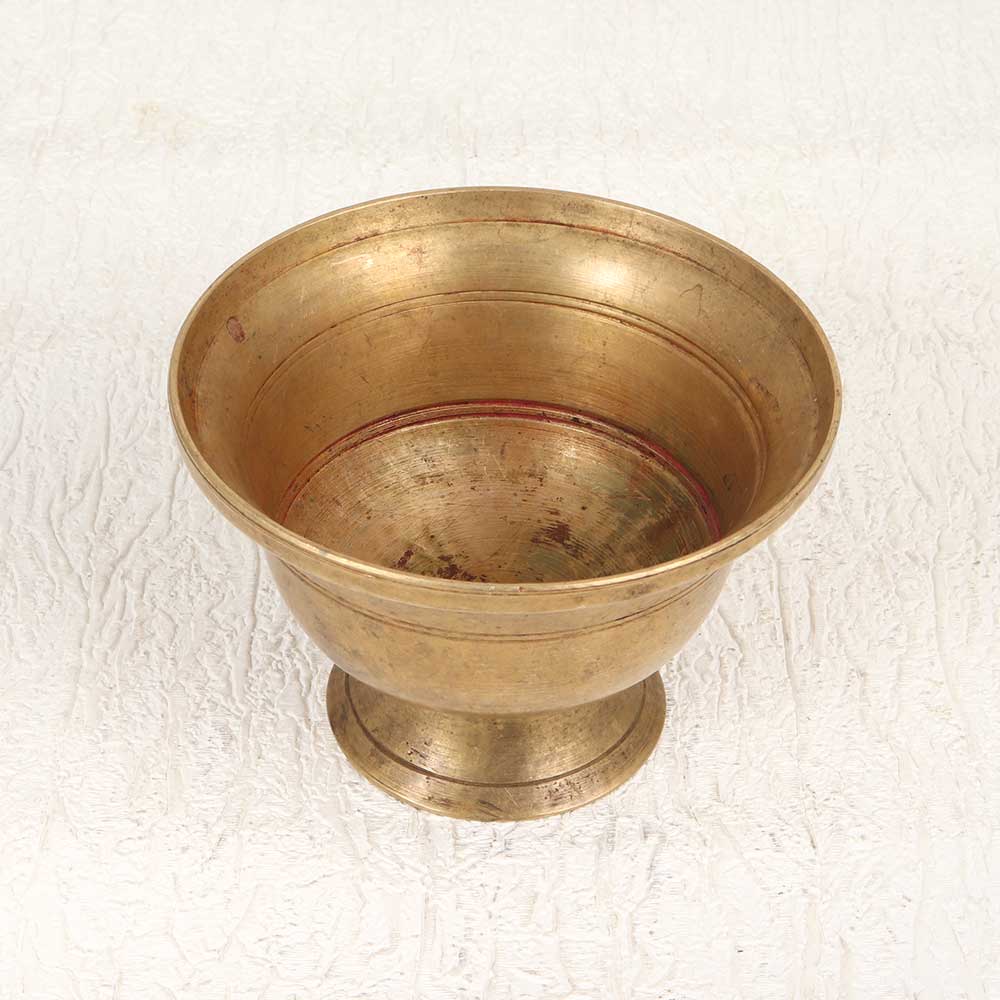 Add an air of antiquity to your altar with this solid brass holy Kumkum Cup, featuring a vintage South Indian design. With its plain yet elegant brown patina, this cup uplifts your puja practice. Use this cup to apply tilak or offer Kumkum powder during puja or ceremonies. Its vintage character lends dignity and tradition to your rituals. A thoughtful gift for housewarmings, weddings, or holidays, it honours Indian culture. Devout Hindus who value heritage will appreciate this authentic Kumkum cup. Place it on your altar to connect with cherished customs and add meaning to your prayers. This handcrafted brass cup brings sacred tradition to life.