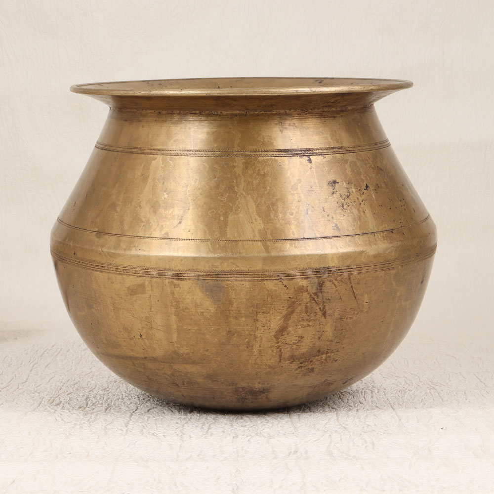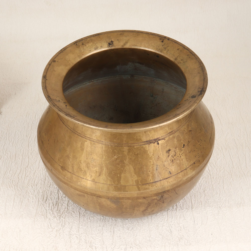 A Vintage Brass Cooking Pot which is a masterpiece meticulously crafted by highly skilled Indian artisans in the revered tradition of South Indian Art. This exquisite pot boasts a rich antique brown finish, showcasing the enduring beauty of high-quality brass. Handmade with precision, it embodies the essence of craftsmanship passed down through generations. Versatile and elegant, this vintage gem is more than just a cooking pot – it serves as a captivating decoration for your home, office, restaurant, hotel, or cafe. Transform it into an indoor flower pot, radiating warmth and sophistication. As a vintage piece, we recommend reserving it for decorative purposes only, adding a touch of heritage to your space. Ideal for collectors of vintage treasures, this brass pot promises to be a cherished addition to your collection. Gift it to your family, friends or relatives on special, festive, or auspicious occasions, and let its timeless allure become a symbol of enduring craftsmanship and cultural legacy.