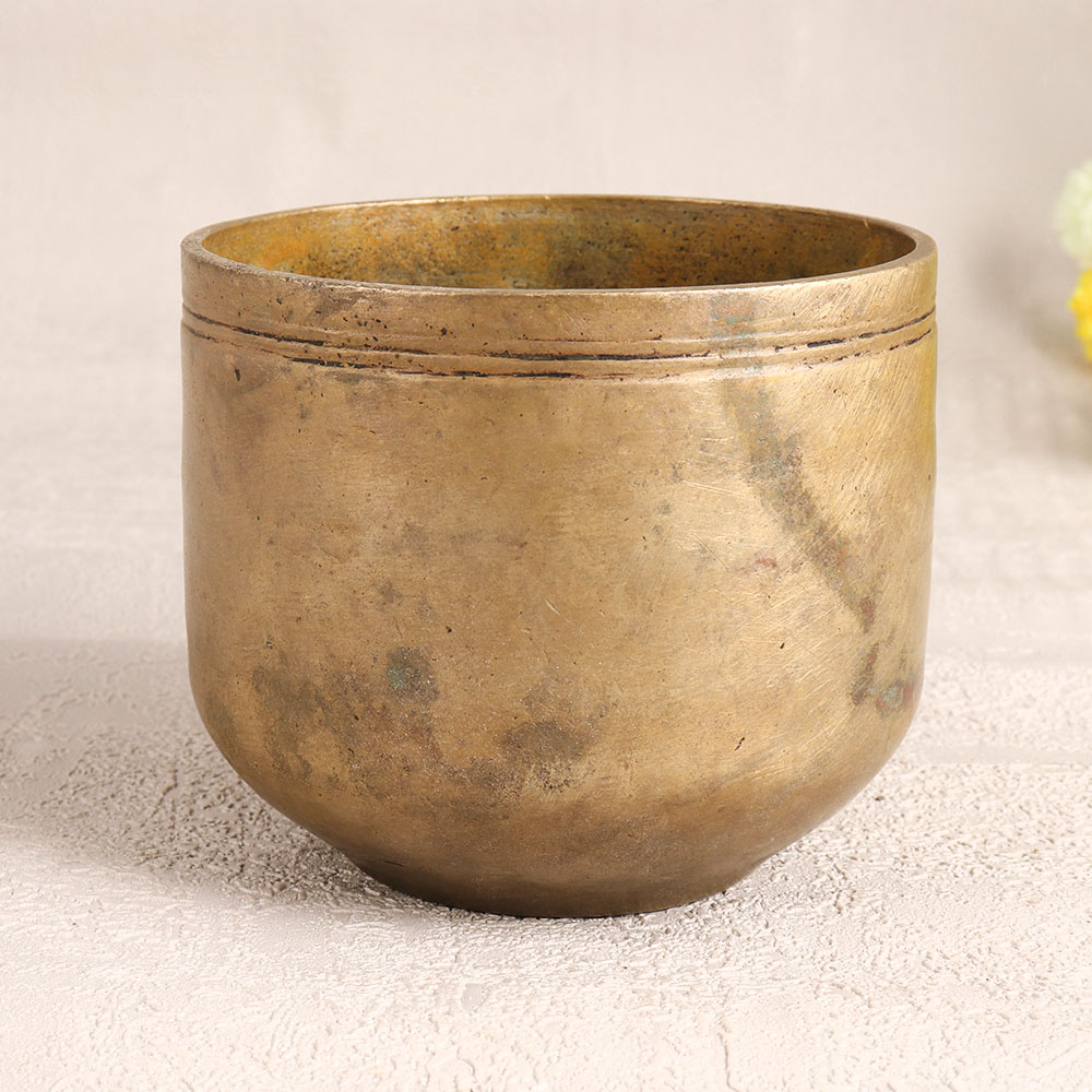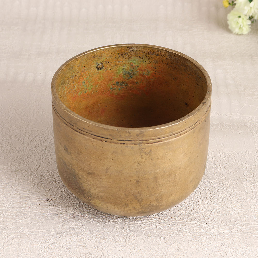 Buy a vintage brass holy pot online that is meticulously crafted by talented Indian artisans from South India. This exquisite piece with its antique brown finish, exudes an aura of heritage and spirituality that will instantly enhance any setting. Handcrafted with precision and devotion, this holy pot is a testament to the artisan’s dedication and craftsmanship. It is fashioned from high-quality brass, ensuring durability and an enduring lustre. This pot is not merely a religious artefact, it's a versatile addition to your interior design. Place it in your home, office, hotel, cafe, shop, or restaurant's prayer room to infuse a sense of divinity and tradition. Its functional design allows you to use it as a small flower pot, adding a touch of nature and elegance to your sacred space. Moreover, it's a unique addition to any vintage collection and a captivating exhibit at special events or exhibitions. Share the blessings by gifting this holy pot to your family, friends or relatives on special, festive, or auspicious occasions. It's a symbol of spirituality, craftsmanship, and your affection, making it a cherished and meaningful present. Embrace the beauty of tradition with this vintage brass holy pot and let it inspire your surroundings with its enduring elegance.
