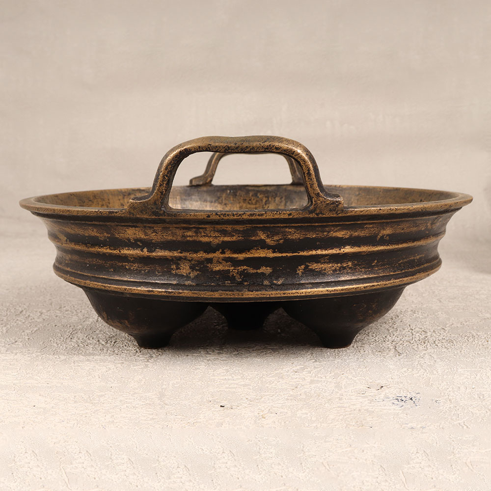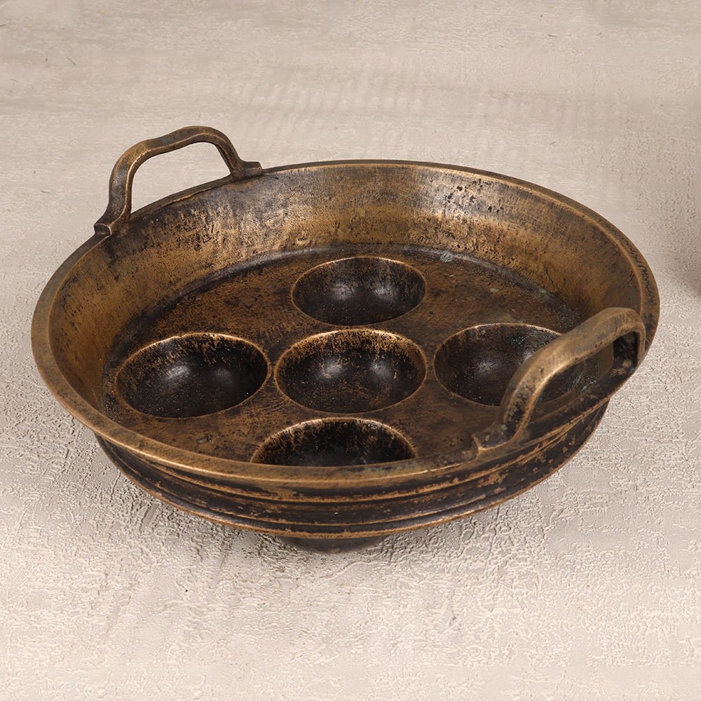 Buy a Vintage Brass Idli Making Bowl online which is a timeless piece of South Indian artistry that seamlessly blends tradition with elegance. Meticulously handcrafted by highly skilled artisans, this idli bowl boasts a distinctive antique brown finish, highlighting the inherent beauty of high-quality brass. The bowl features two delicately crafted handles, adding a touch of practicality to its aesthetic charm. Designed to evoke the rich culinary heritage of South India, this vintage masterpiece is a versatile decor accent suitable for various settings. Whether adorning the home, office, restaurant, hotel, or cafe, its captivating presence elevates any space. While its historical significance makes it a captivating addition to any vintage collection, we recommend using it primarily for decorative purposes, preserving its antique allure. This Vintage Brass Idli Making Bowl isn't just an exquisite decor item, it's a thoughtful gift for your family, friends or relatives on special, festive, or auspicious occasions. Each piece is a testament to the craftsmanship and cultural heritage of South India, making it a unique and cherished present that transcends time. Elevate your surroundings with this handcrafted relic and embark on a journey through the ages of culinary artistry and craftsmanship.