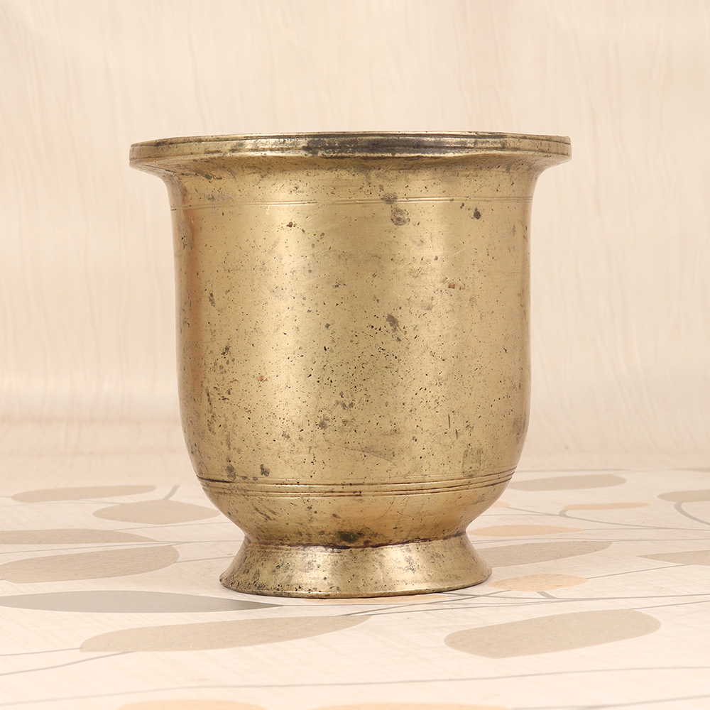 In the heart of South India, where spirituality and artistry intertwine, a treasure emerges - the vintage brass holy water cup. This captivating vessel, steeped in centuries of cultural heritage, is a must-have for anyone seeking to elevate their sacred practices. This holy water cup is more than just a functional item - it's a work of art that invites you to slow down, connect with the divine, and immerse yourself in the timeless wisdom of South Indian tradition. Incorporating this piece into your daily routine will transform your spiritual practice, infusing it with a sense of reverence and mindfulness. Imagine the feeling of cool, consecrated water flowing through your fingers as you perform your ablutions. Picture the way the soft light reflects off the gleaming brass, creating an atmosphere of tranquility and focus. This holy water cup is designed to be a cherished heirloom, passed down through generations as a testament to the enduring legacy of South Indian spirituality.