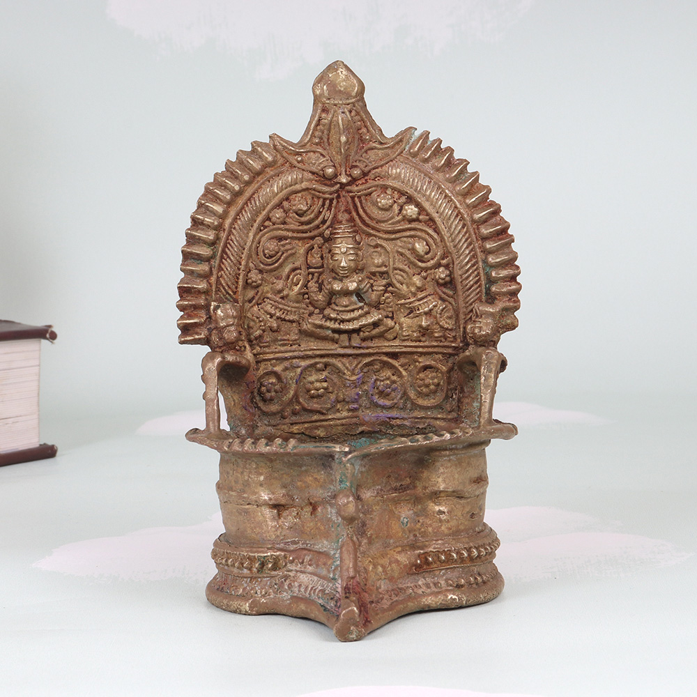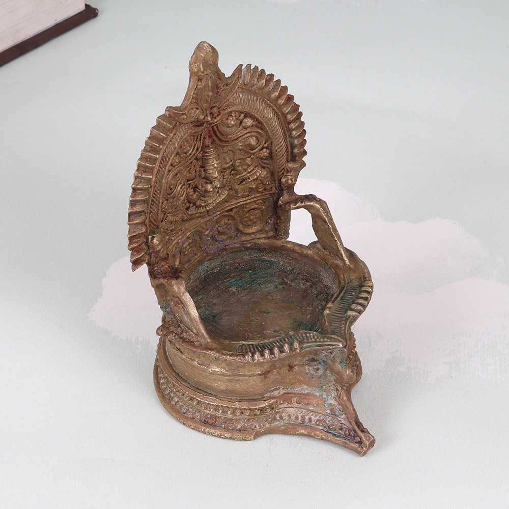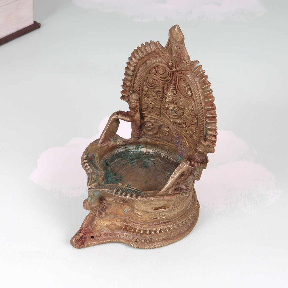 - Handcrafted from premium brass with intricate South Indian artwork