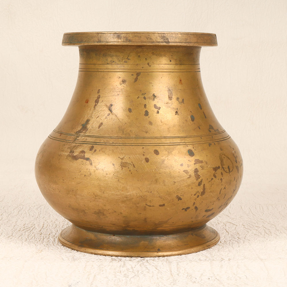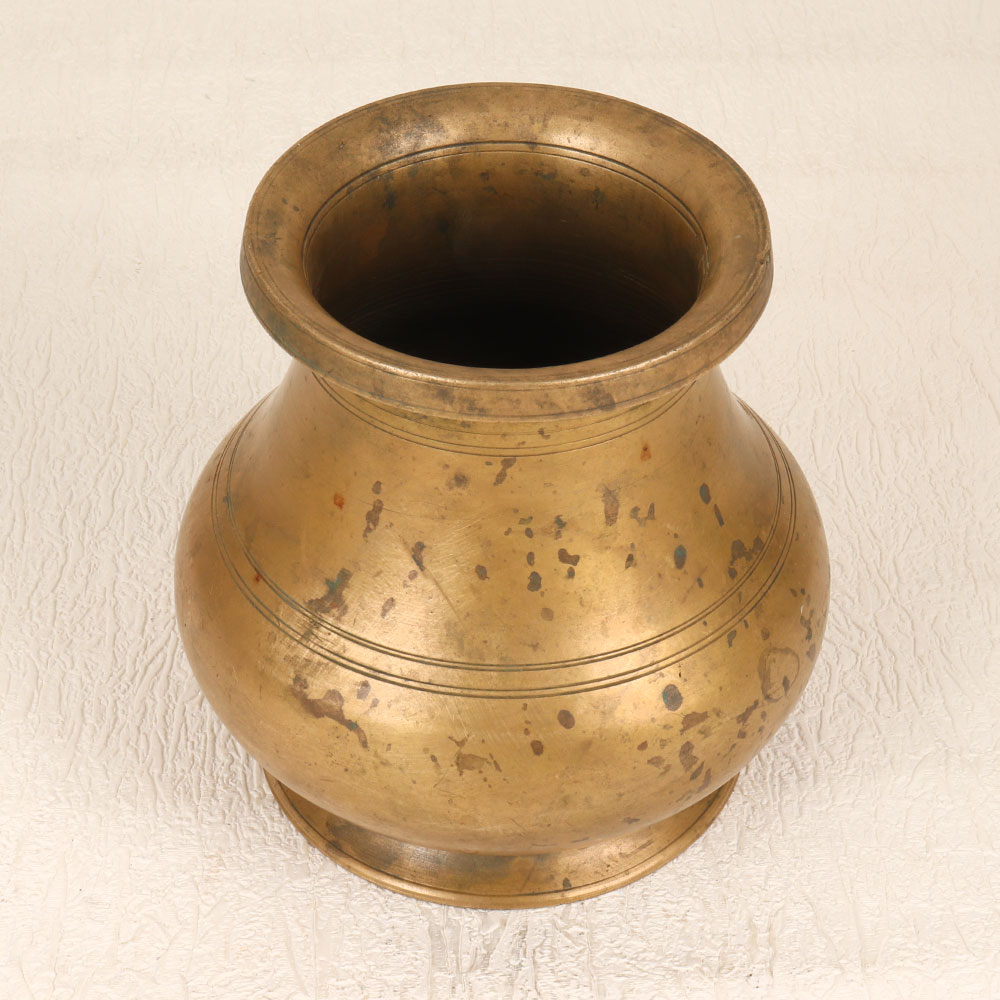 A Vintage Brass Holy Water Pot which is a testament to divine craftsmanship and timeless elegance. Handmade by professional Indian artisans in the revered South Indian Art tradition, this pot is a sacred vessel designed for prayer, rituals, and havans. Crafted from high-quality brass, it boasts an antique brown finish, adding a touch of vintage charm to any environment. The pot transcends its religious significance and doubles as an indoor flower pot, seamlessly blending spirituality with aesthetics. Its versatile nature makes it a perfect addition to home prayer rooms, offices, restaurants, hotels, or cafes. Imbued with cultural richness, it not only serves a functional purpose but also becomes a cherished piece for vintage collectors. Celebrate special, festive, or auspicious occasions by gifting this timeless masterpiece to your family, friends or relatives. Embrace the divine heritage and infuse your surroundings with both spirituality and artistic allure.