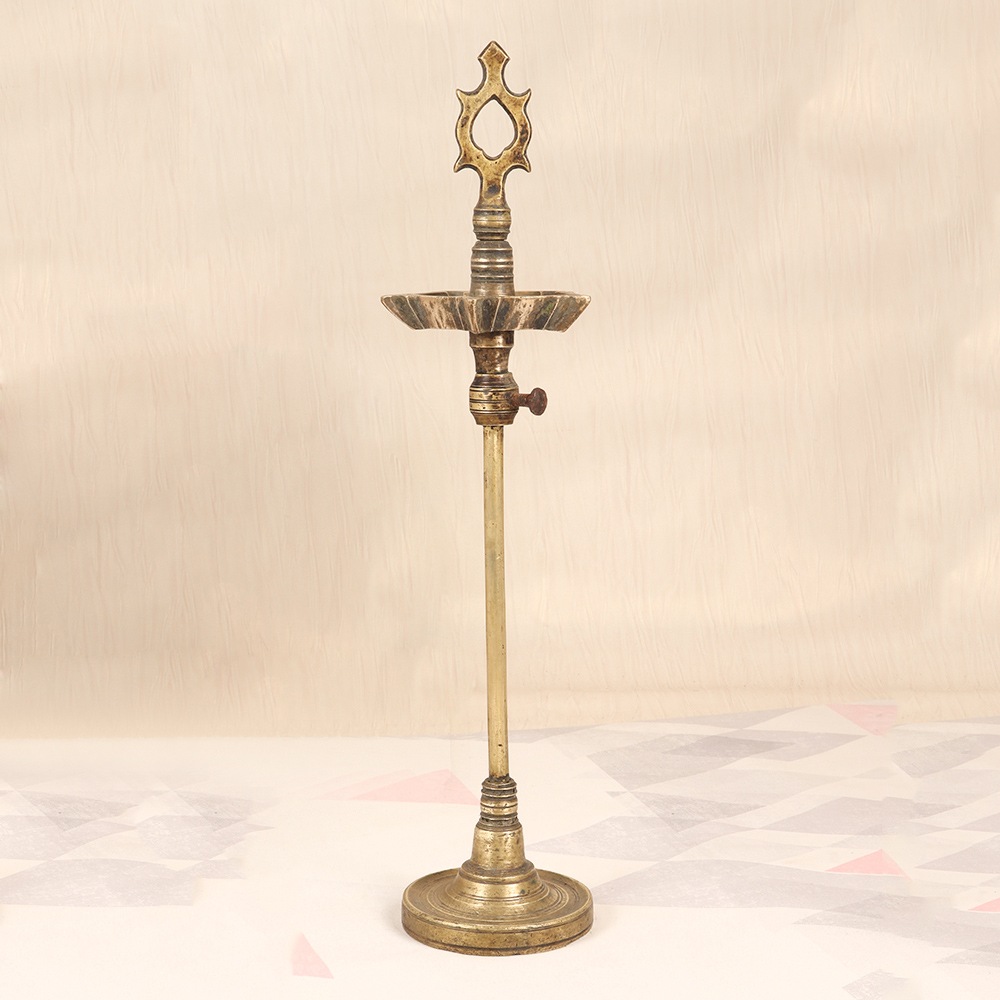 Recapture the magic of bygone eras with our Vintage Brass Oil Lamp - a stunning work of South Indian art that brings the warmth and ambiance of traditional lighting to your modern home. This captivating lamp is more than just a source of illumination - it's a portal to a time when life moved at a slower, more intentional pace. The gentle, flickering flame creates a calming, meditative atmosphere, inviting you to unwind, reconnect with your senses, and savor the simple pleasures of life. Whether you're setting the mood for a romantic evening, seeking a tranquil space for meditation, or simply wanting to add a touch of timeless elegance to your decor, the Vintage Brass Oil Lamp is the perfect choice. Its ornate brass construction and intricate engravings make it a true investment piece, destined to become a cherished heirloom that will be passed down through generations. Embrace the beauty of the past and let the Vintage Brass Oil Lamp illuminate your world with its captivating glow.