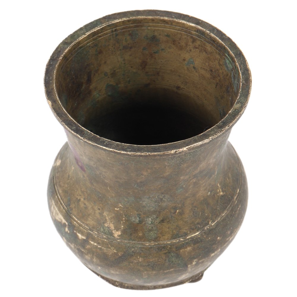 Handmade patina rich brass ritual water storage pot originally used for purification by hindus has a lovely artistic shape. Perfect to be used for collection, home décor and personal gifting.