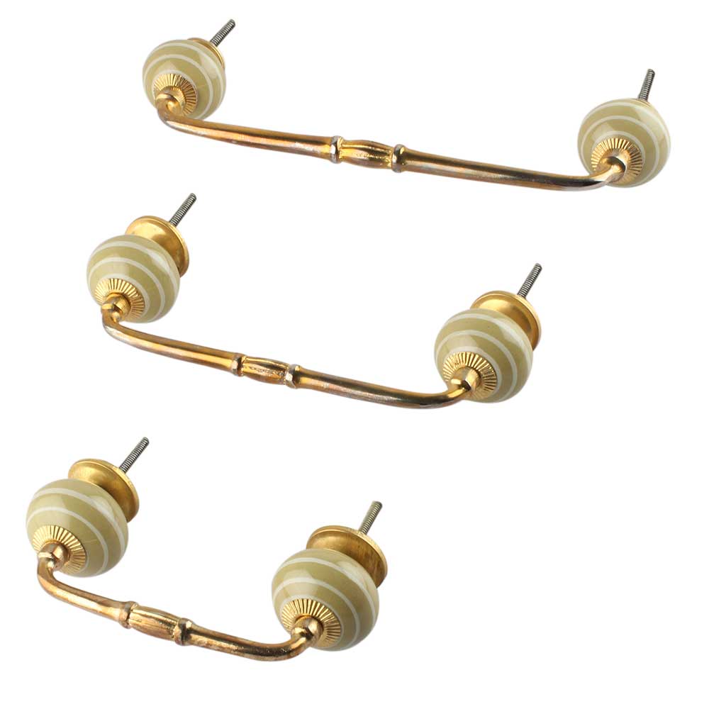 Spanish Olive Stripe Ceramic Bridge Dresser Handles