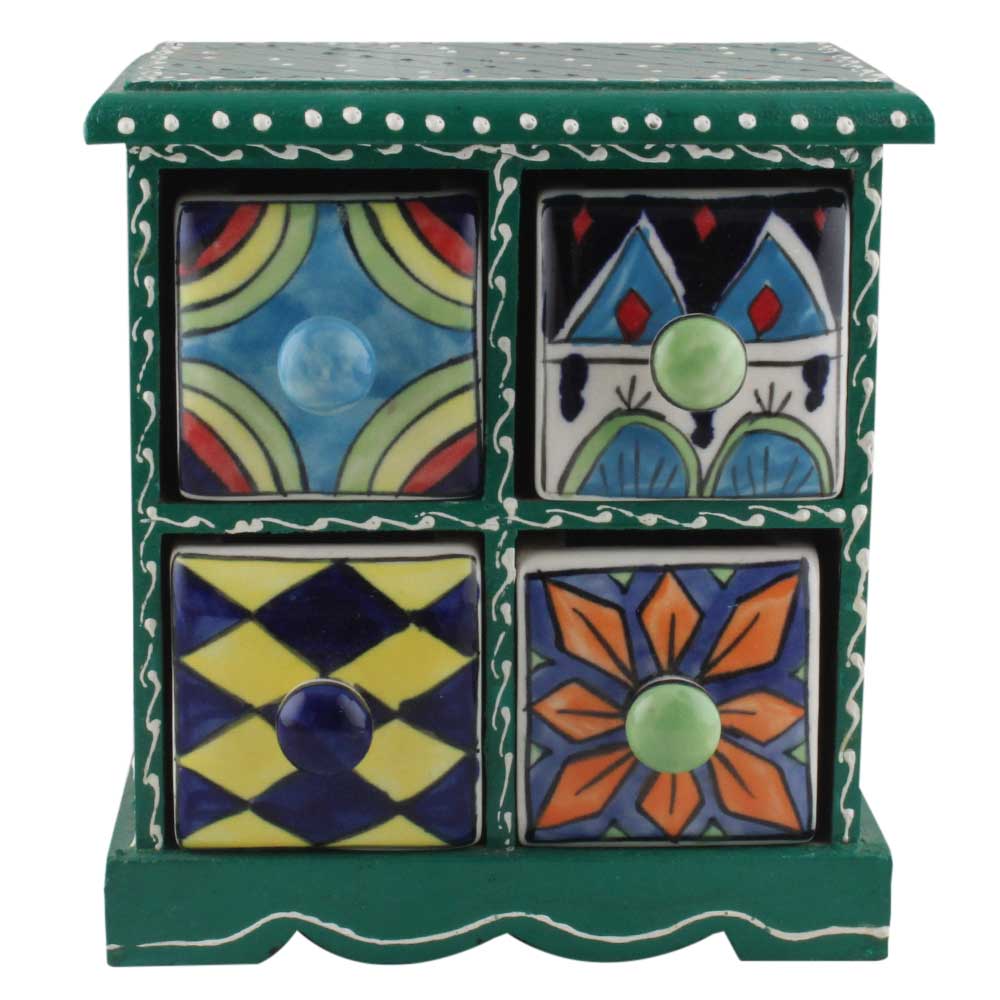Spice Box-1212 Masala Rack Container Gift Item. Ceramic Drawers in Wooden Frame. The Spice Boxes are designed with different patterns. These boxes are made using natural wood which does not harm the purity of spices.