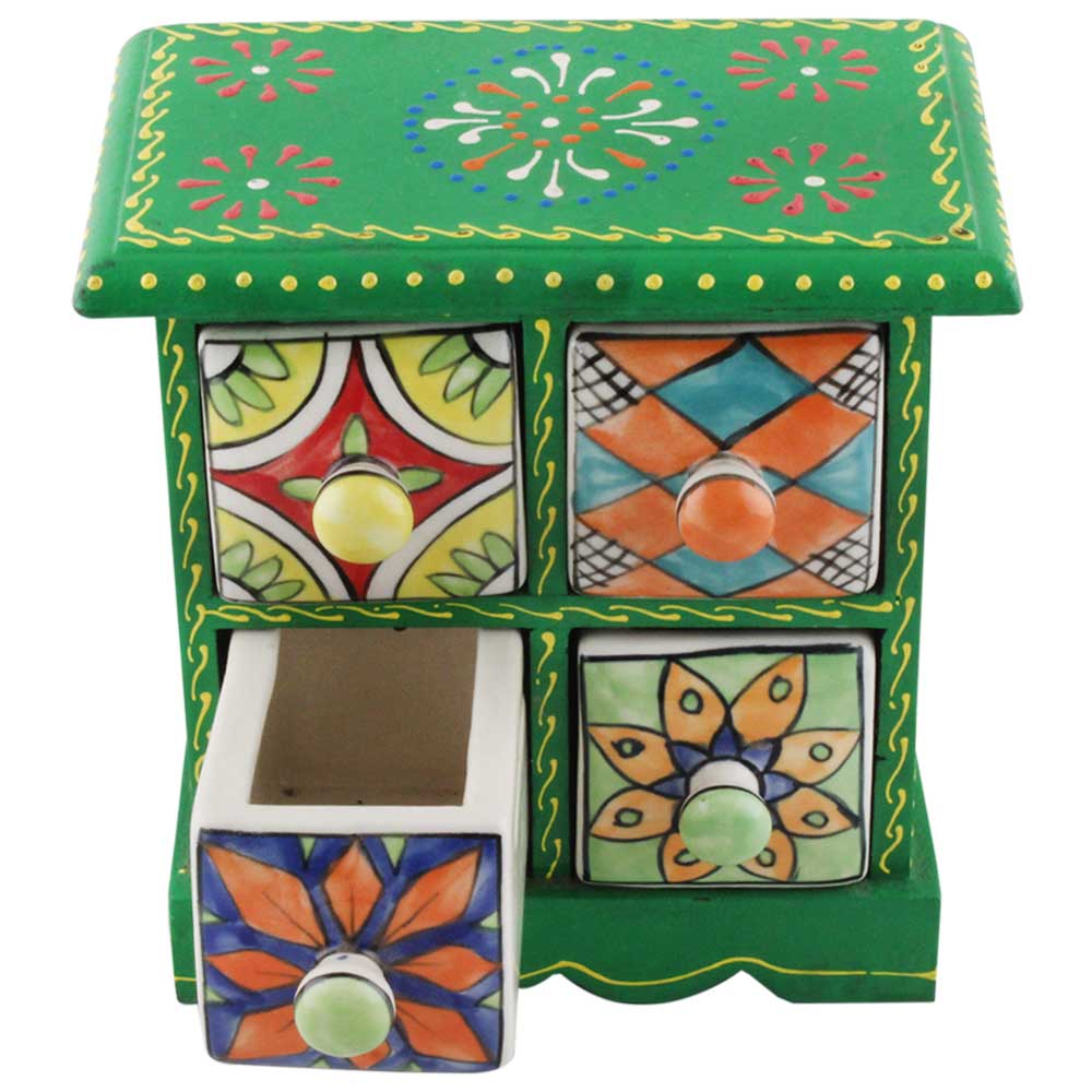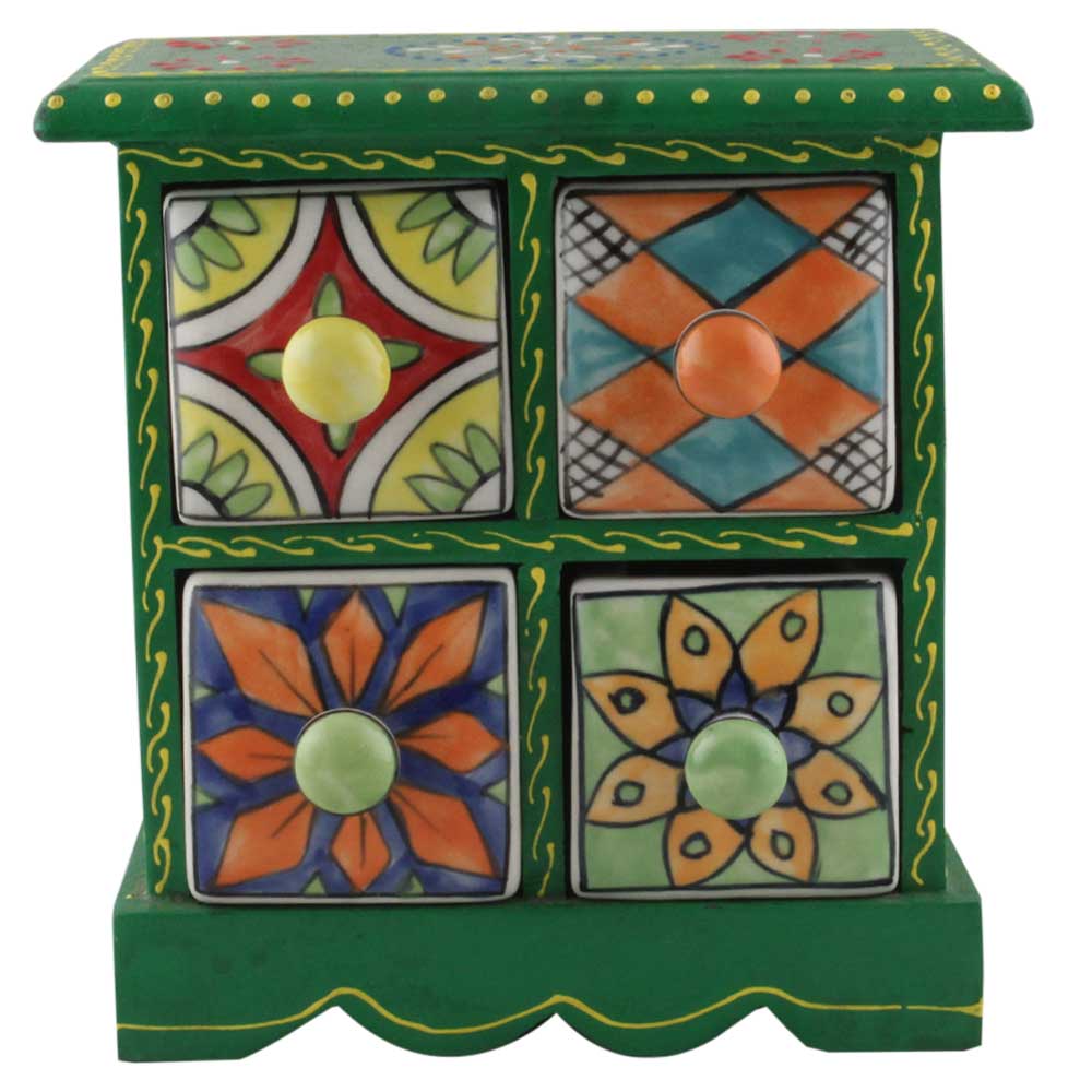 Spice Box-1239 Masala Rack Container Gift Item. Ceramic Drawers in Wooden Frame. The Spice Boxes are designed with different patterns. These boxes are made using natural wood which does not harm the purity of spices.