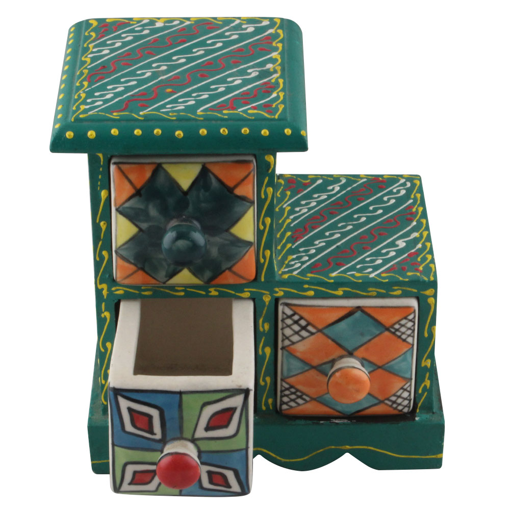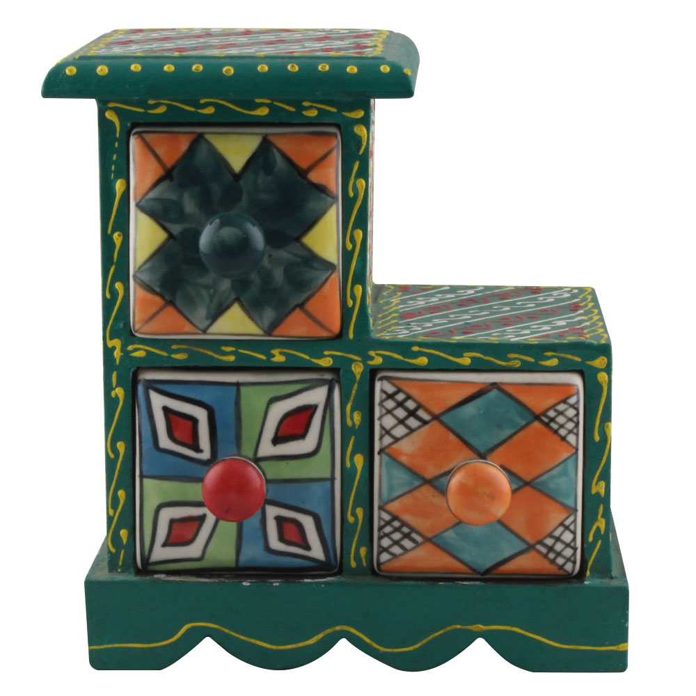 Spice Box-1300 Masala Rack Container Gift Item. Ceramic Drawers in Wooden Frame. The Spice Boxes are designed with different patterns. These boxes are made using natural wood which does not harm the purity of spices.