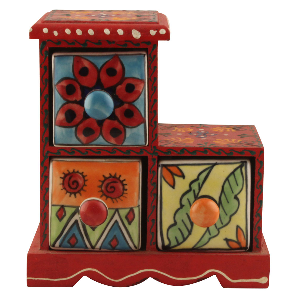 Spice Box-1302 Masala Rack Container Gift Item. Ceramic Drawers in Wooden Frame. The Spice Boxes are designed with different patterns. These boxes are made using natural wood which does not harm the purity of spices.